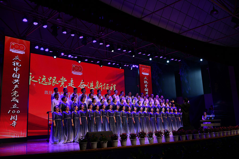 歌声嘹亮颂党恩,红舞翩翩庆华诞。为庆祝中国共产党成立100周年,回顾党的光辉历程,讴歌党的丰功伟绩,6月24日下午,四川省地矿局“两优一先”表彰大会暨“永远跟党走 奋进新征程”文艺汇演活动在学院大礼堂举行。