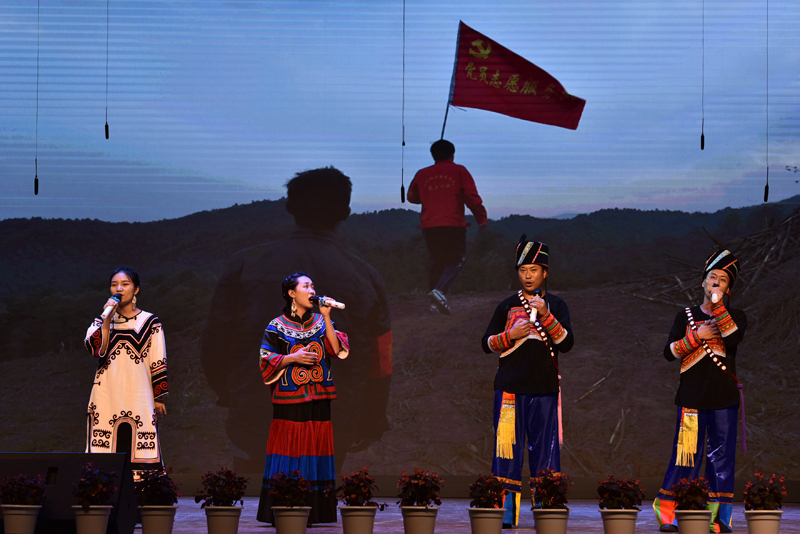 文艺汇演在四川省地矿局党委领导班子带来的《东方红》小合唱中拉开序幕,来自局地矿之声乐团、局机关离退休合唱团和基层单位带来的独唱、歌舞、情景剧等,奏响了歌颂党、歌颂祖国的主旋律。