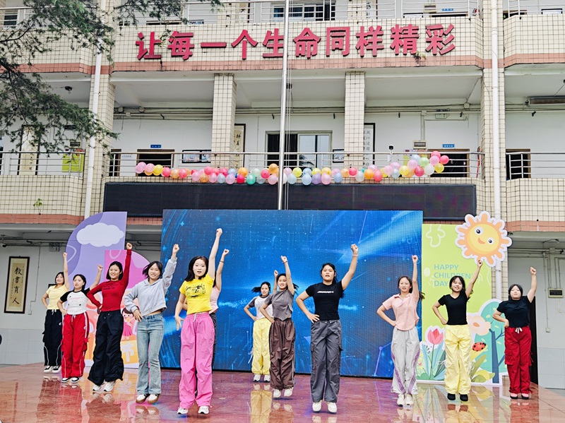 活动现场,气氛热烈而温馨。学院学子精心准备的舞蹈和歌唱节目,为孩子们带来了无尽的欢乐。随着音乐的节奏,志愿者们轻盈的舞步和甜美的歌声赢得了现场观众的阵阵掌声,孩子们也和哥哥姐姐们一起舞动起来,尽管动作略显稚嫩,但他们脸上洋溢的笑容和积极向上的精神,让在场的每一位志愿者深受感动。