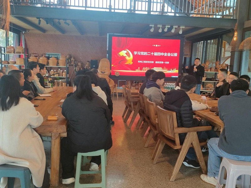 机电工程系党支部、服务管理第一党支部组织了专题学习,深入学习领会党的二十届四中全会精神。党员们认真学习、热烈讨论,表示要将思想和行动统一到全会部署上来,凝心聚力为高质量发展贡献力量。党员们围绕“党建引领 数字赋能 竹编振兴”的主题,结合自己的工作实际,畅谈心得体会,分享如何在岗位上践行全会精神,为党和人民事业贡献力量。
