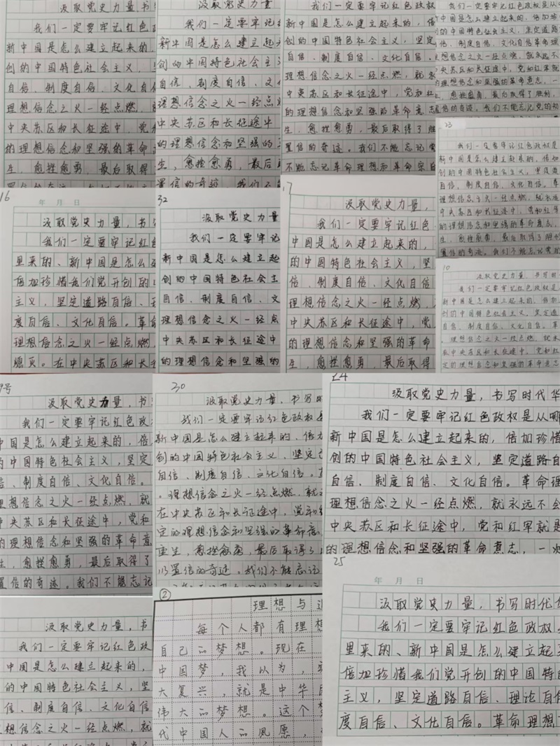 电子综合工会小组秉持着丰富教师文化生活、提升文化素养与审美情趣以及强化党史学习教育的初衷,精心组织了此次书法比赛。活动一经推出,便得到了全体教师的积极响应。教师们纷纷拿起笔,在横竖撇捺之间,既展现出扎实的三笔字基本功,又深入探寻着党史的精神富矿。他们以饱满的热情、认真的态度,将党史中的经典语句、重要事件化作笔下刚劲有力、飘逸洒脱的字迹,每一幅作品都仿佛是一扇通往历史深处的窗,让党史的光芒透过笔墨熠熠生辉,书写出属于当下时代的华章。