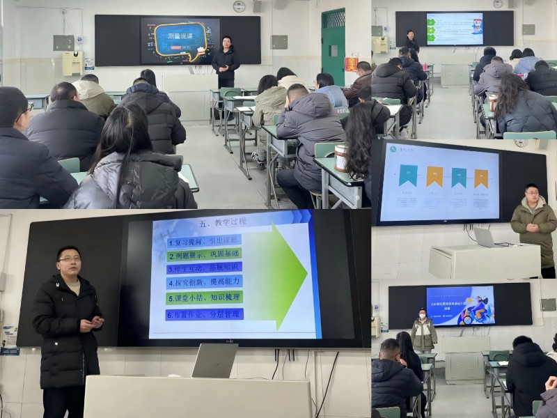 在朱金丽老师的示范带动下,电子信息系五位青年教师依次登台,围绕所授课程展开说课展示。教师们立足学科特点,聚焦“岗课赛证”融通,从学情分析、目标设定、重难点突破、评价体系构建等方面展开阐述,充分展现了课程设计的逻辑性与创新性。其中,何超老师以“一元二次不等式的解法”为例,融入新媒体教学和课程思政案例;陈柯米老师则通过工程测量实践教学,获得现场一致好评。每位教师展示后,老师们针对教学设计中的不足积极提出改进建议,现场研讨氛围热烈。