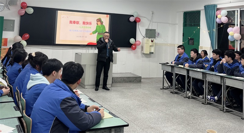 3月13日晚,电子信息系23881班举办了以“我奉献,我快乐”为主题特色班会活动。电子系全体班主任齐聚现场,与同学们共同参与这场富有教育意义的主题活动,深刻领悟雷锋精神的时代内涵。
