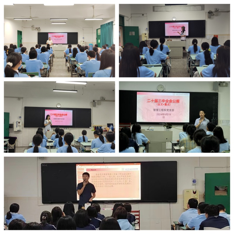 2024年9月,管理工程系党支部举行“党员讲党课”——党的二十届三中全会精神进班级宣讲活动,引领全体党员教师、学生深入学习领会和贯彻落实全会精神,把思想和行动统一到党中央的决策部署上来,凝心聚力、奋发进取,为全面建成社会主义现代化强国、实现第二个百年奋斗目标,全面推进中华民族伟大复兴而努力奋斗!