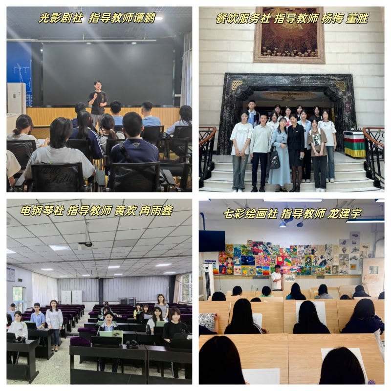 每天课外活动时间,系部实训室便化作青春实践场:酒店服务社成员将企业实训所学融入日常演练;导游社学子精研专业积极备赛;运动舞蹈社团以灵动舞步展现青春风采。艺术、体育、专业技能等领域的十余个社团在实训室绽放光彩,精准匹配学生个性化发展需求。