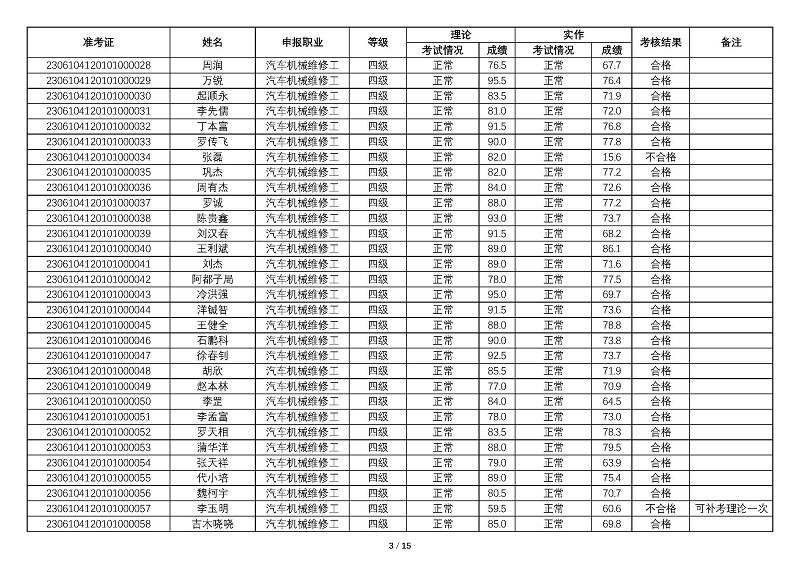 四川矿产机电技师学院关于2023年第三期职业技能等级认定考核成绩的公示