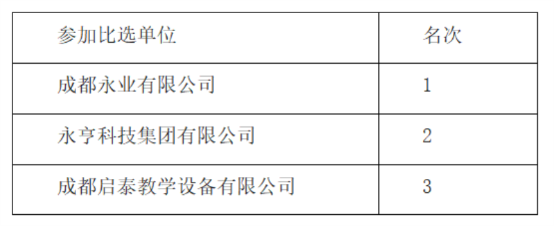 学院评审小组于2023年7月5日,按照学院教学设施设备采购项目比选文件进行了比选评审。现对比选评审结果予以公示: