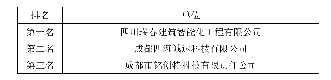 拟中标公司:四川瑞春建筑智能化工程有限公司