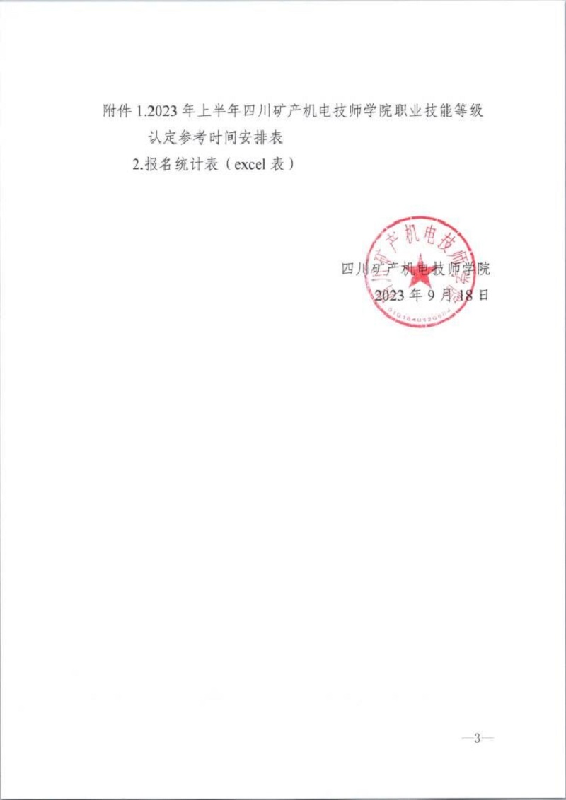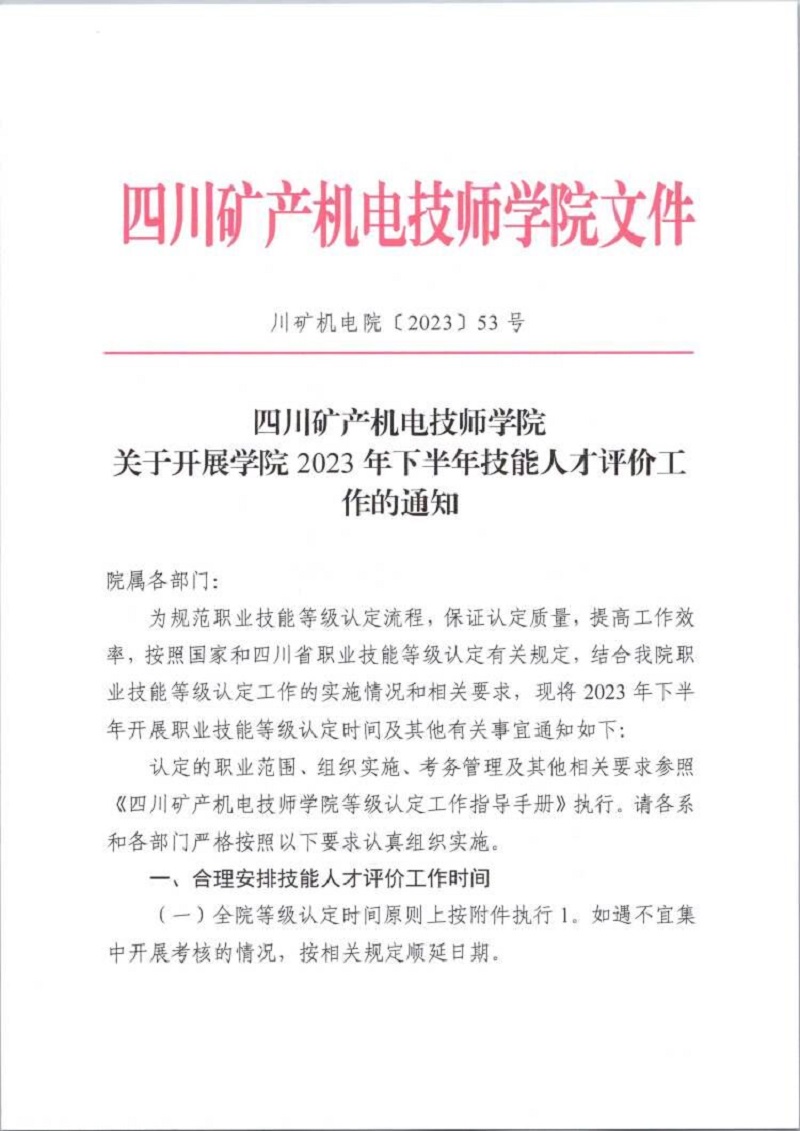 001附件1 2023年下半年四川矿产机电技师学院职业技能等级认定参考时间安排表.zip