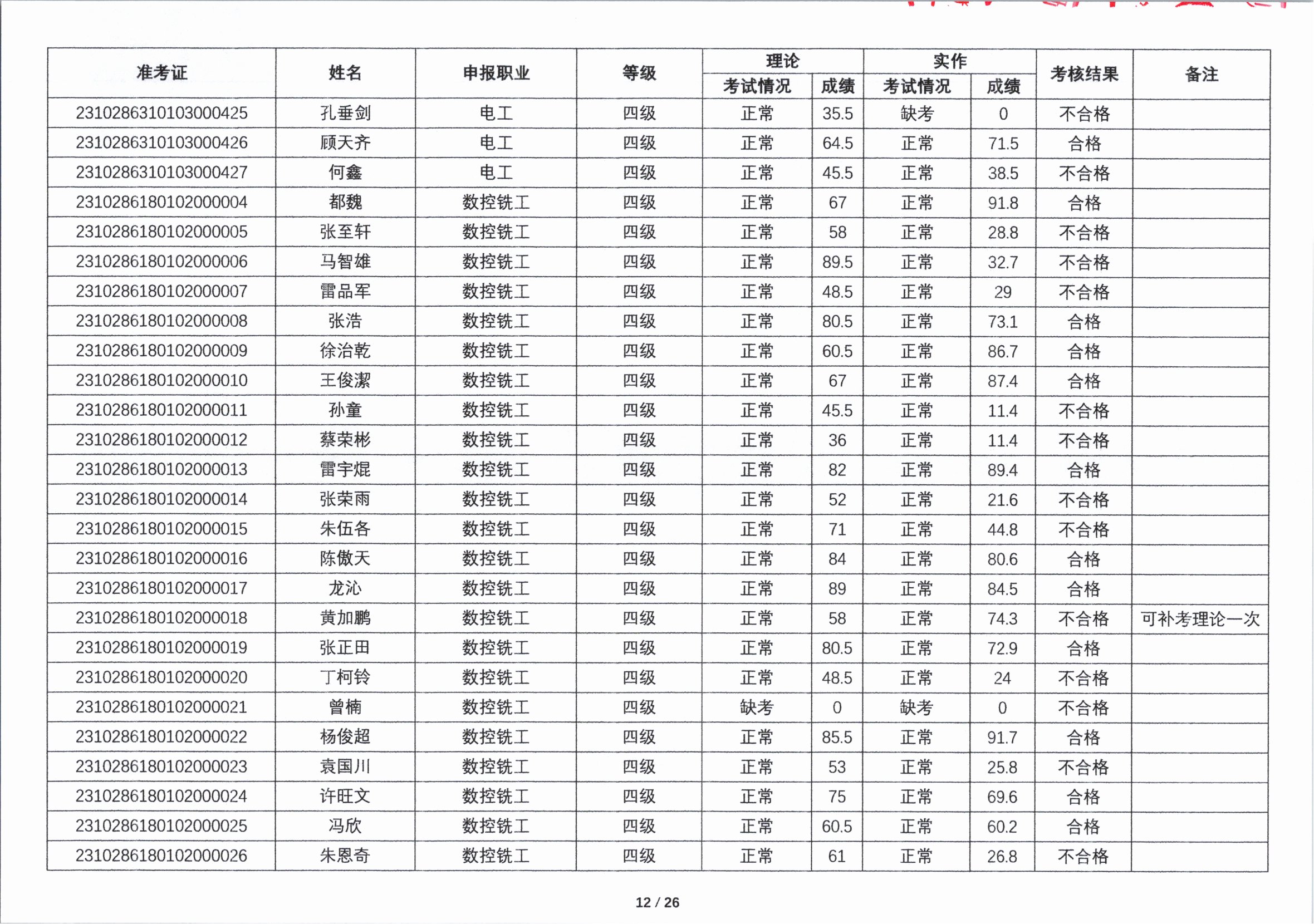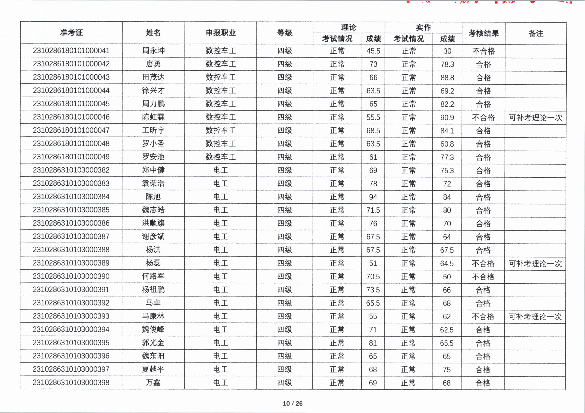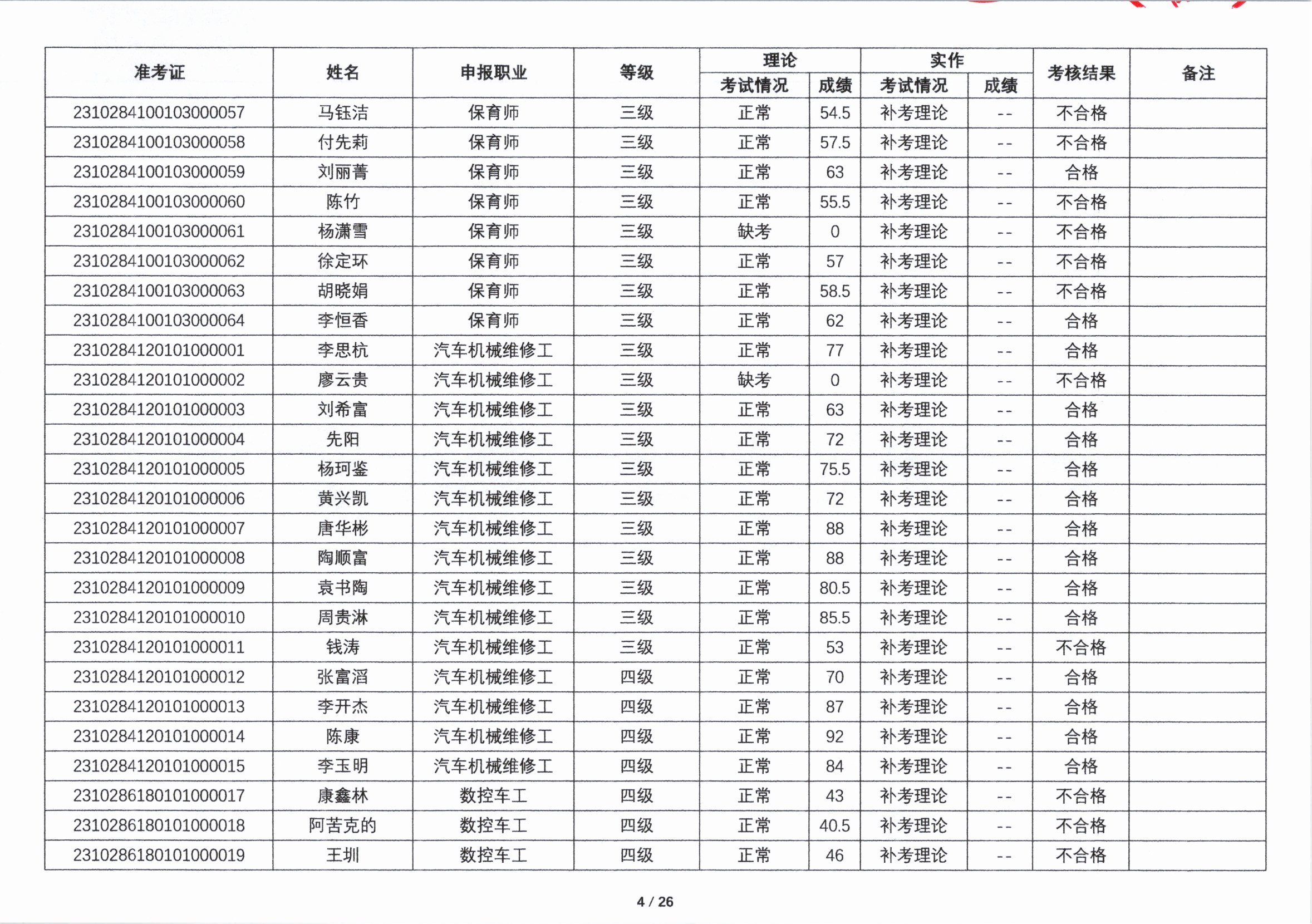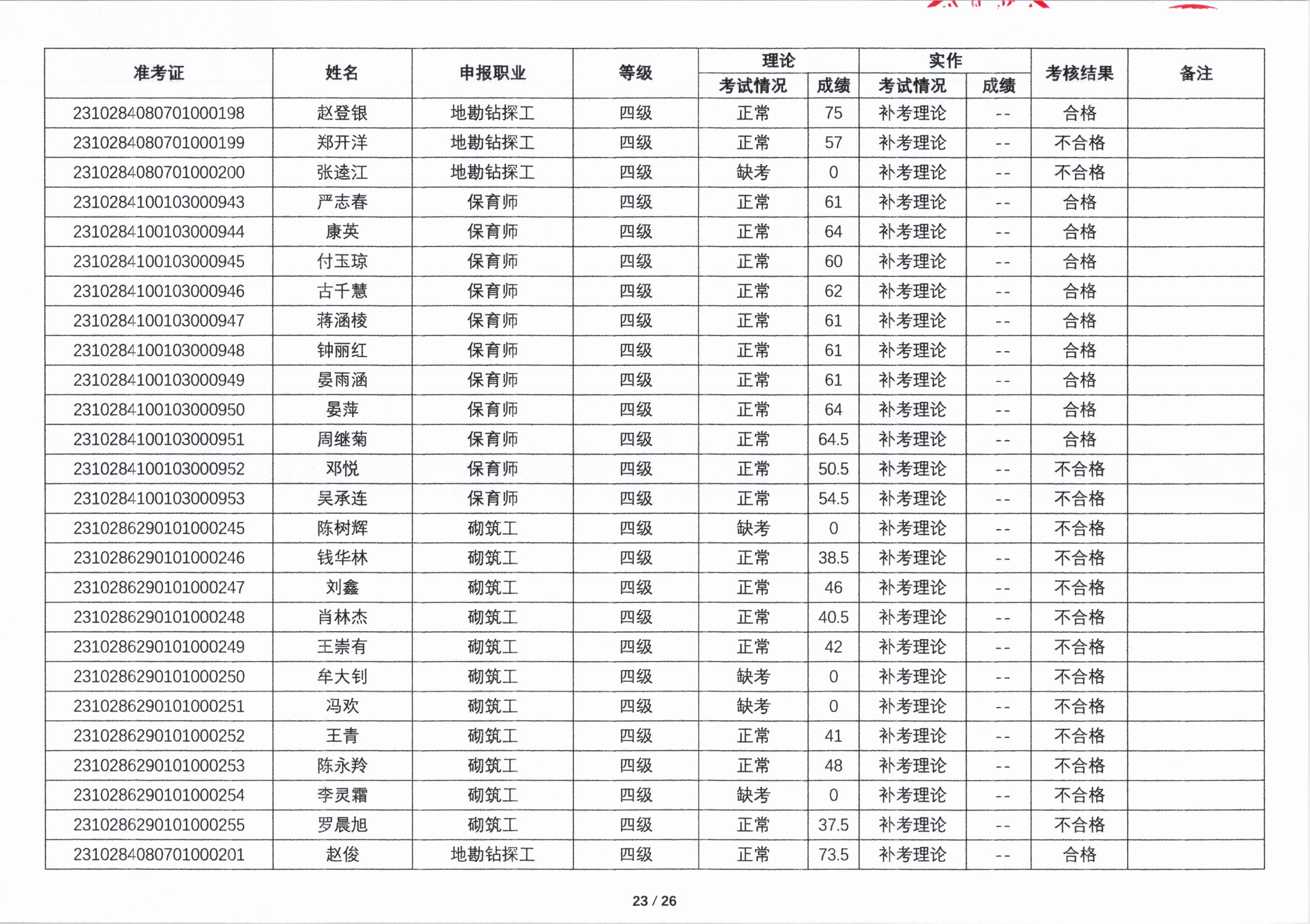 关于2023年第四期职业技能等级认定考核成绩的公示