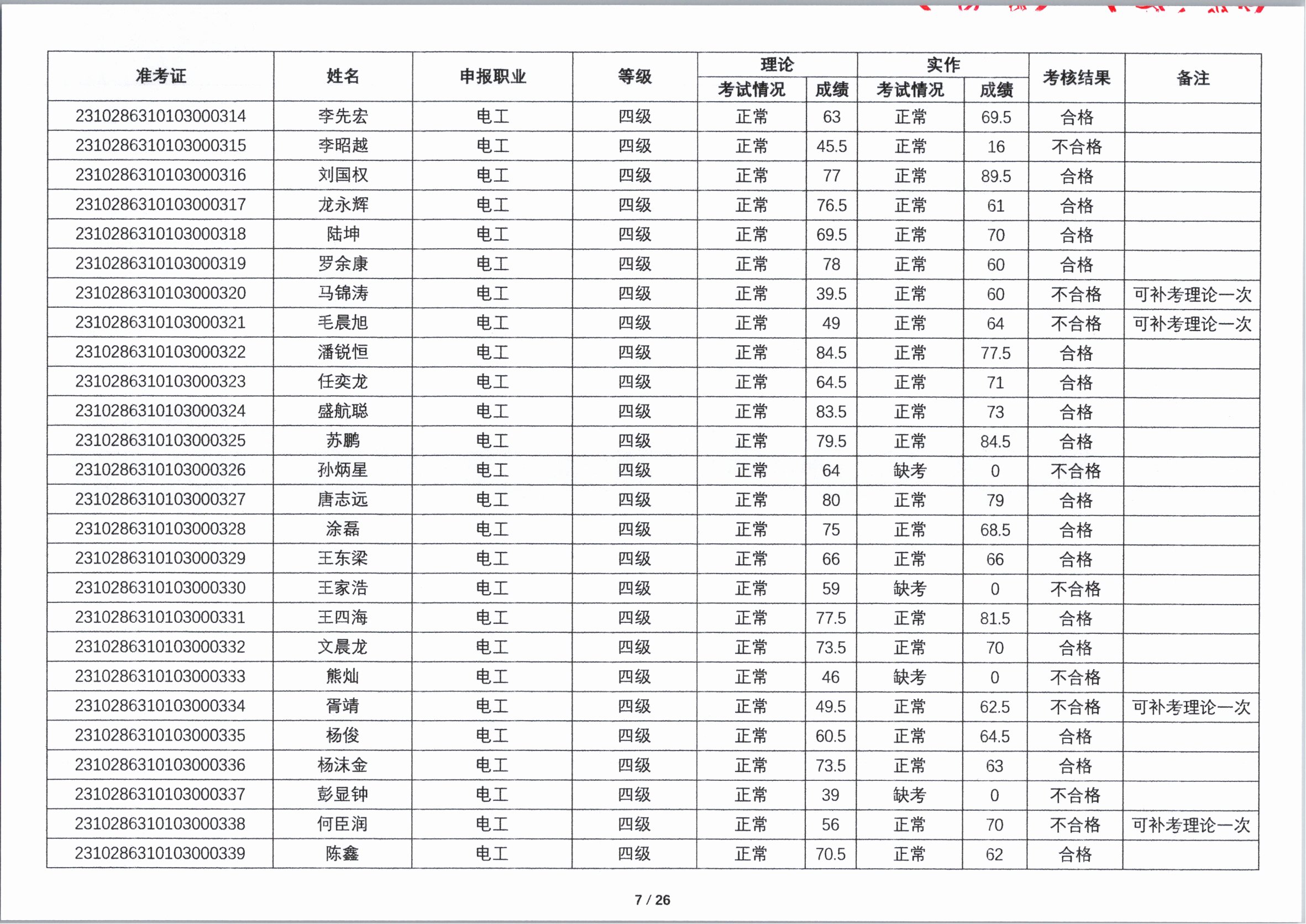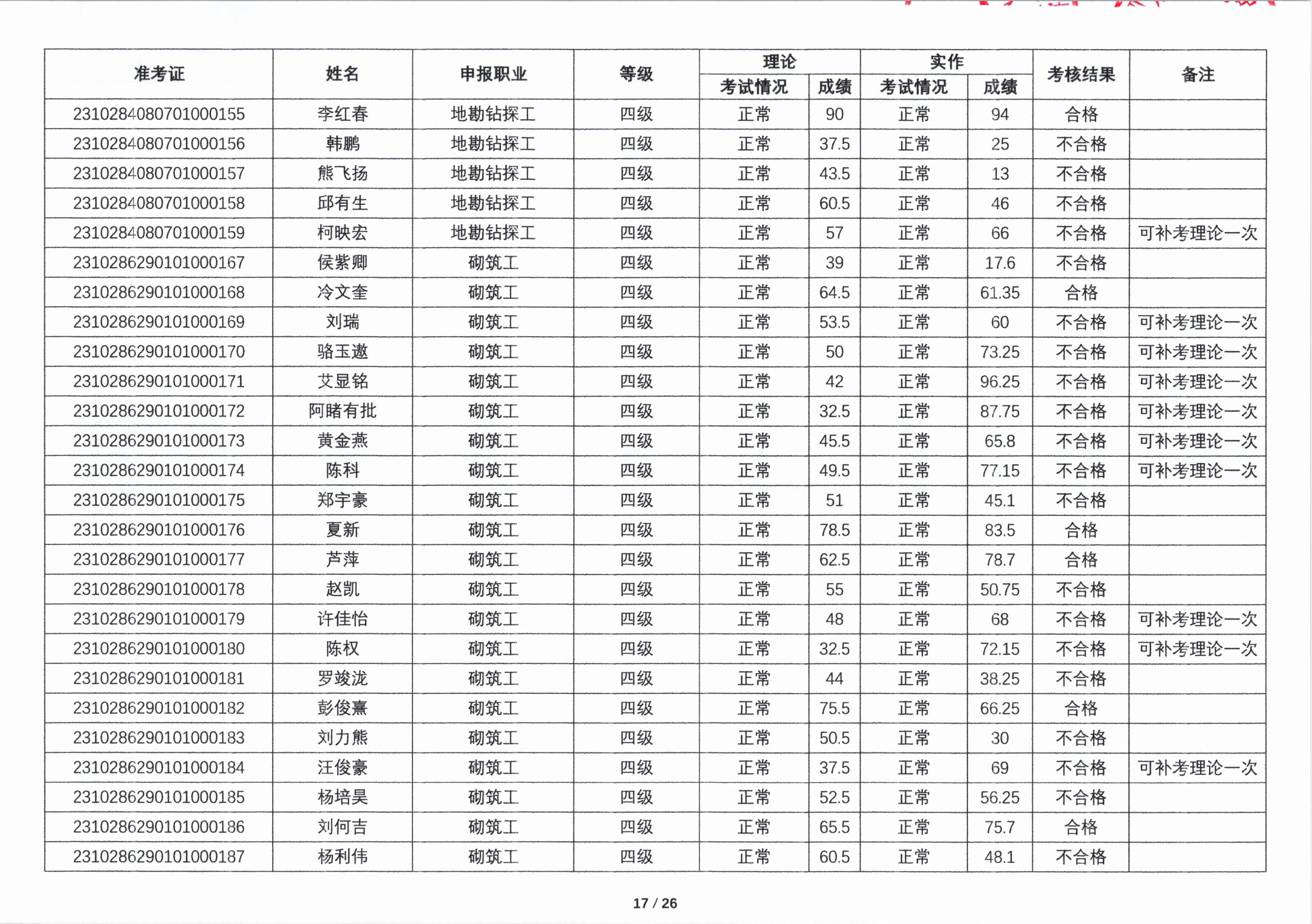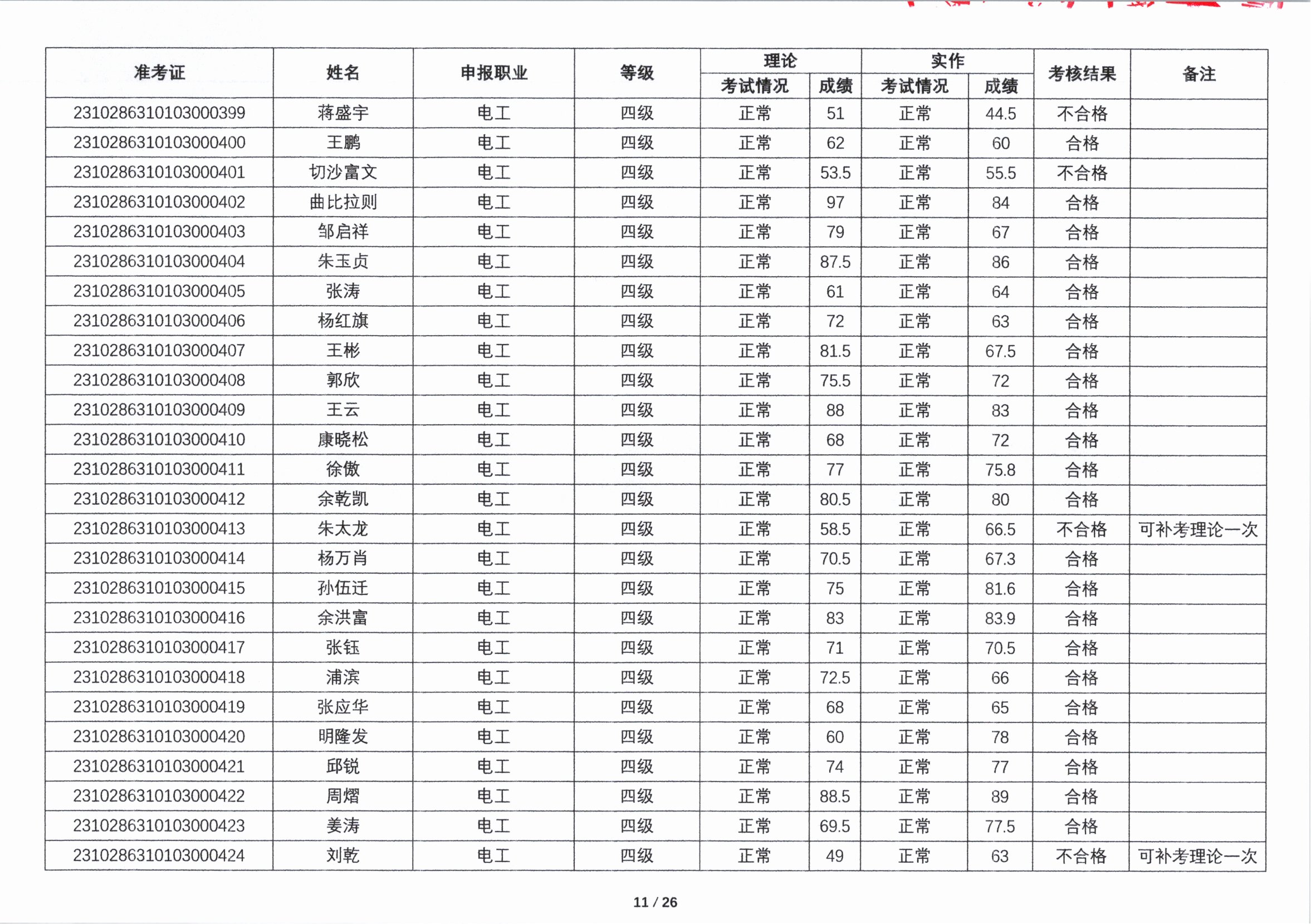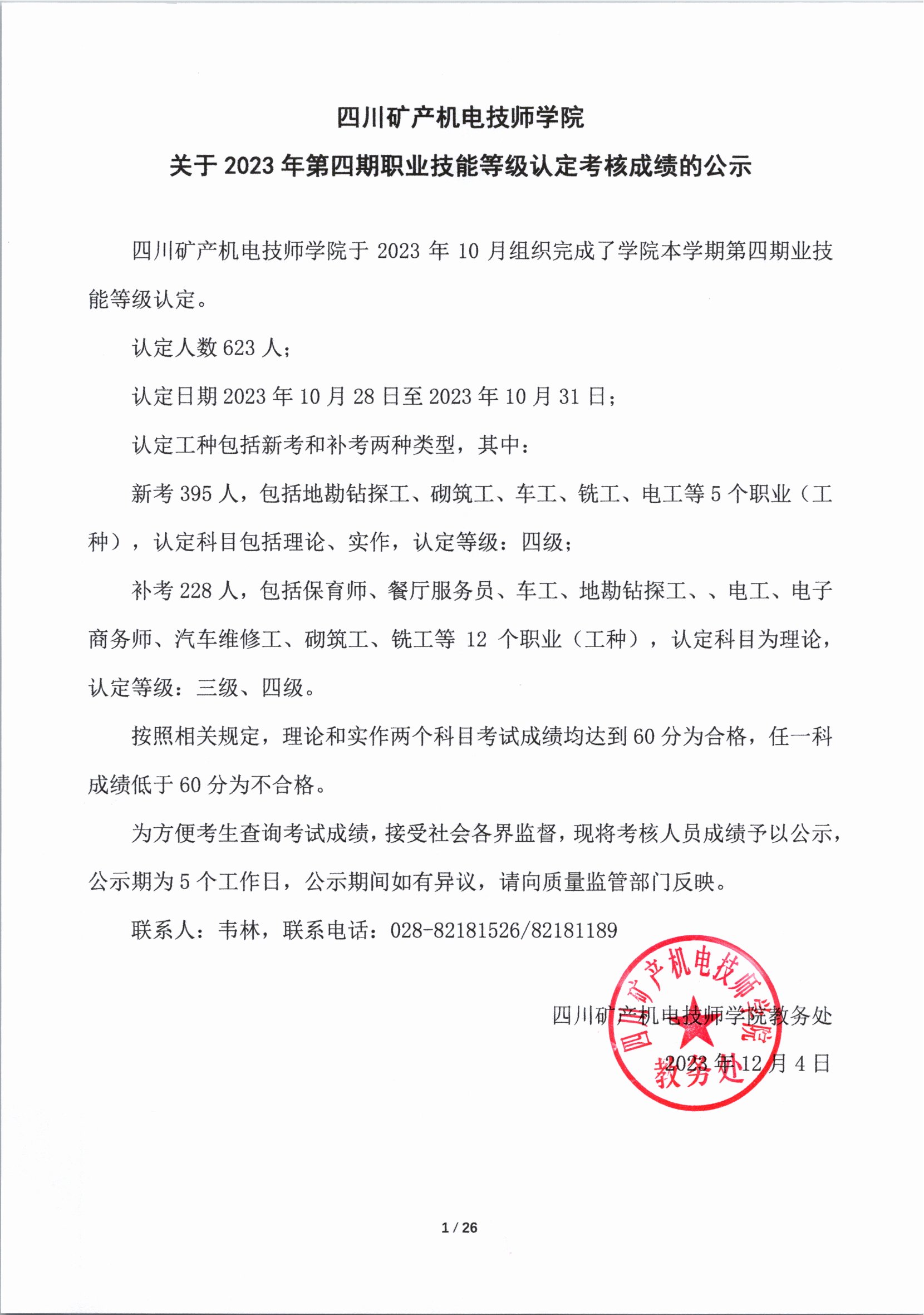 关于2023年第四期职业技能等级认定考核成绩的公示