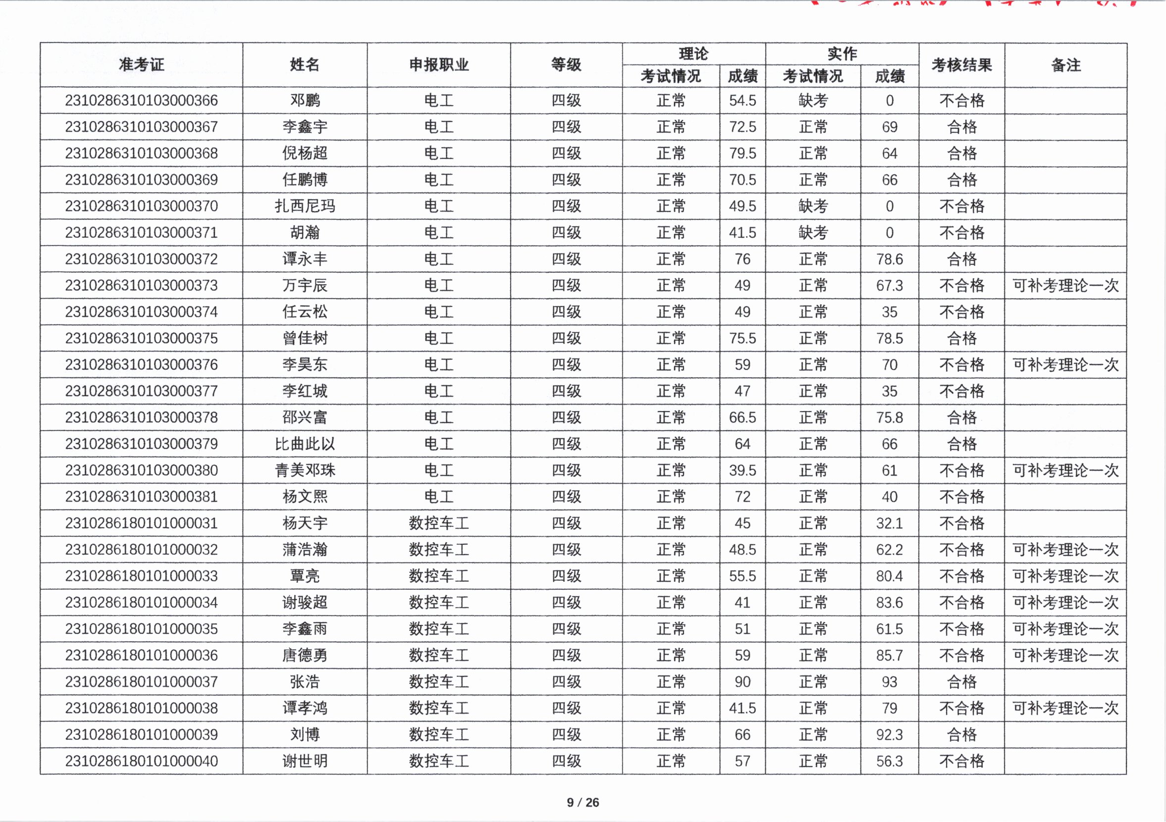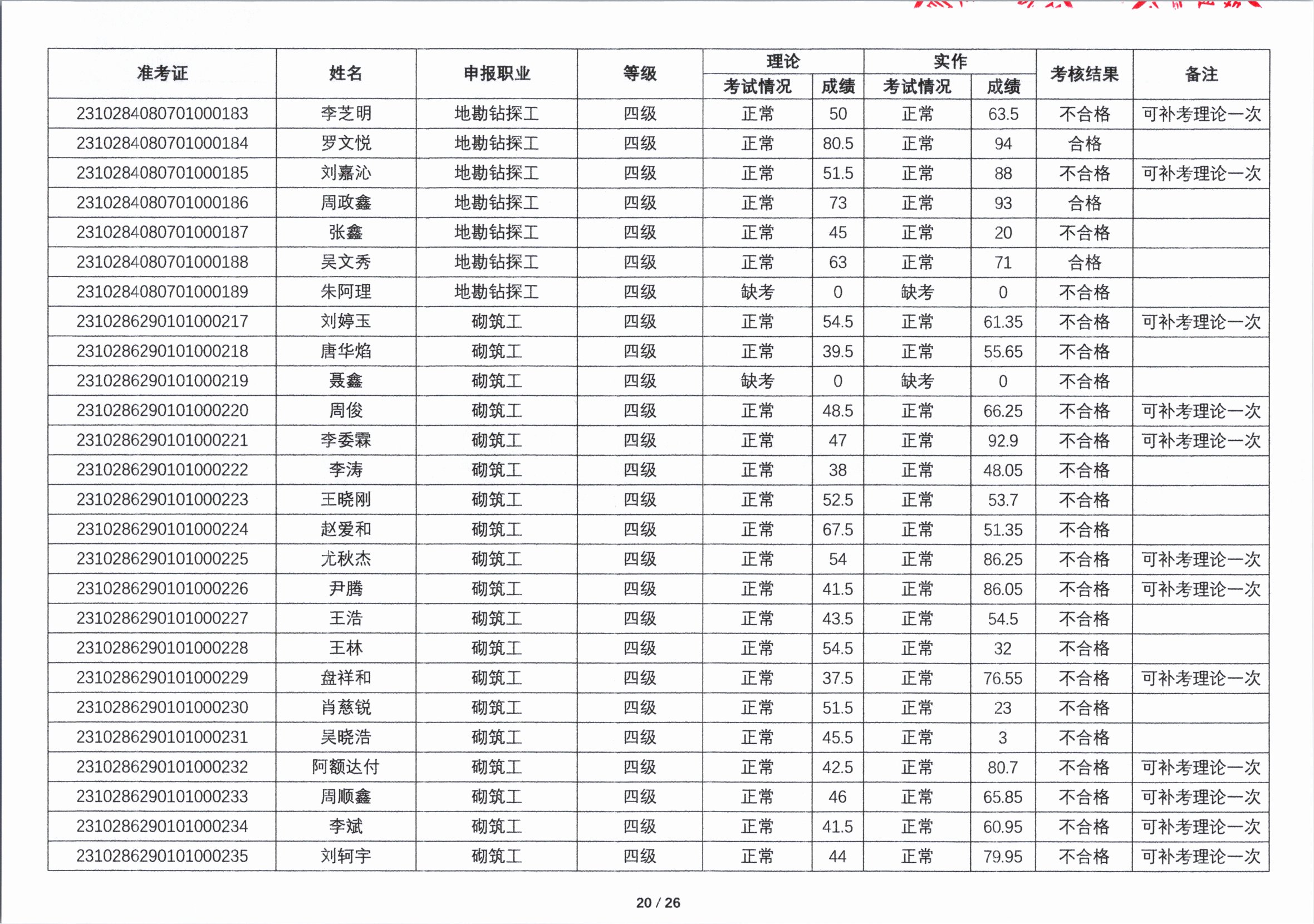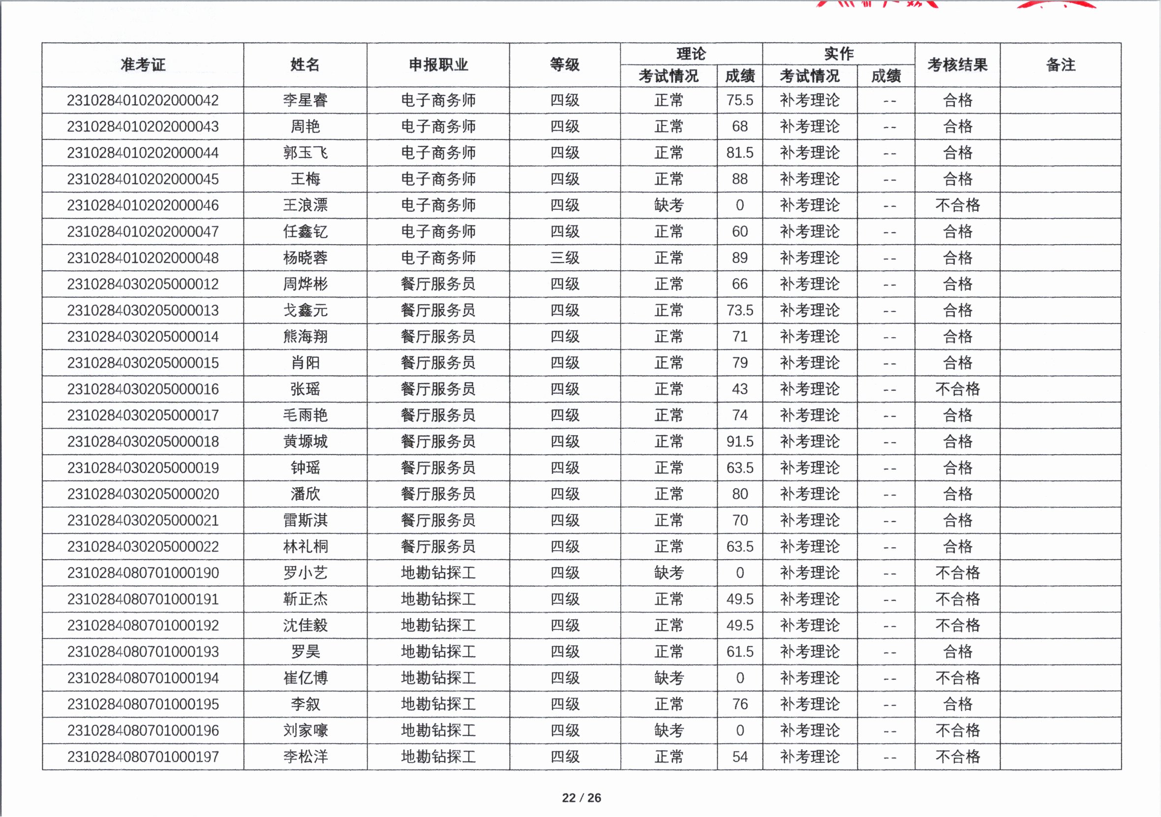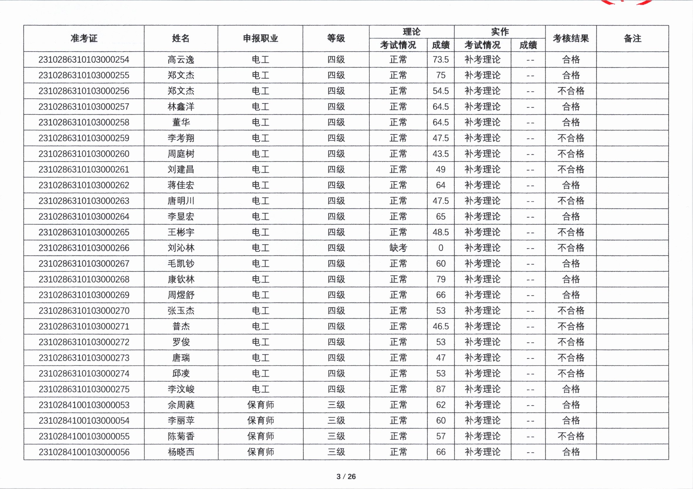 关于2023年第四期职业技能等级认定考核成绩的公示