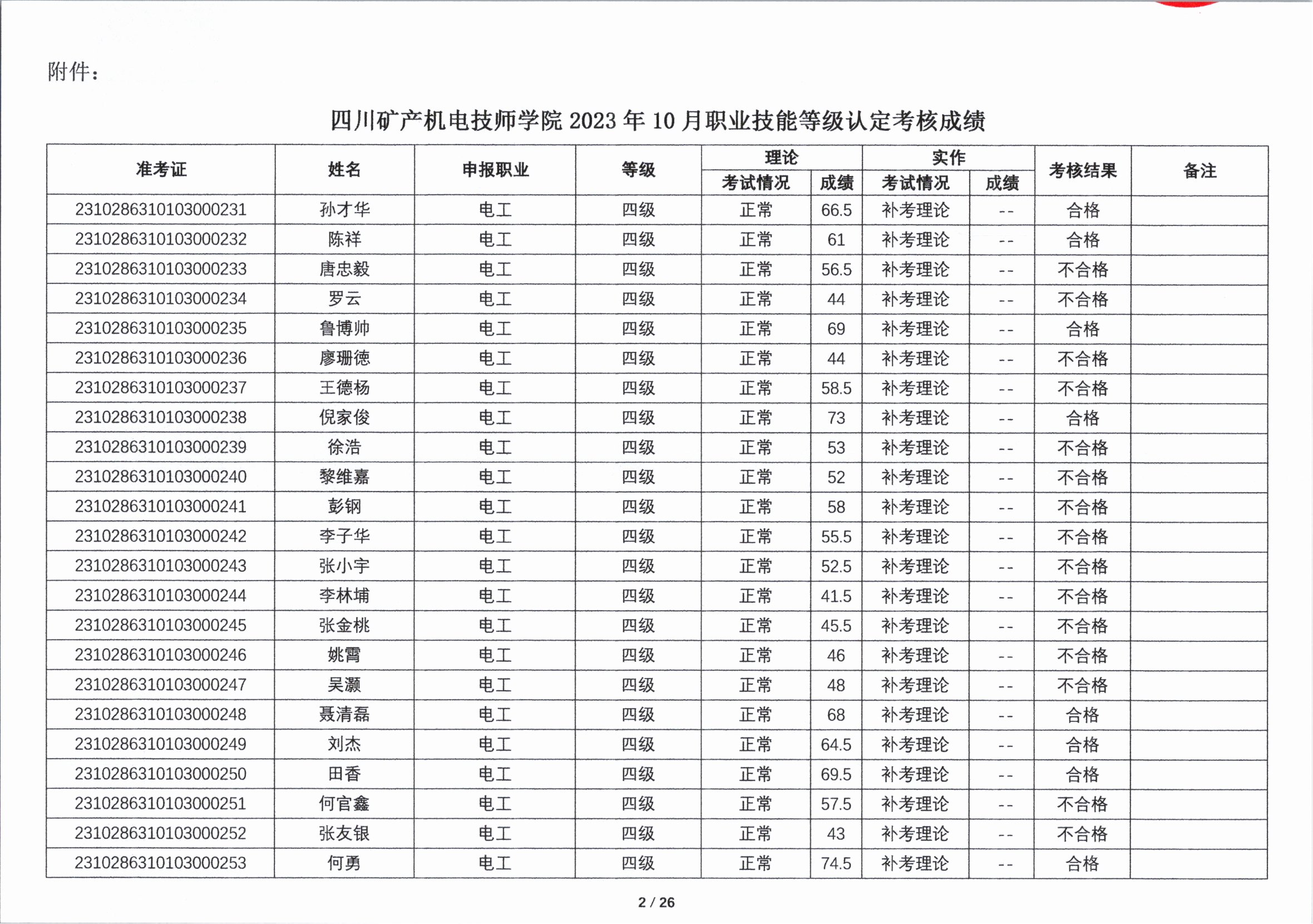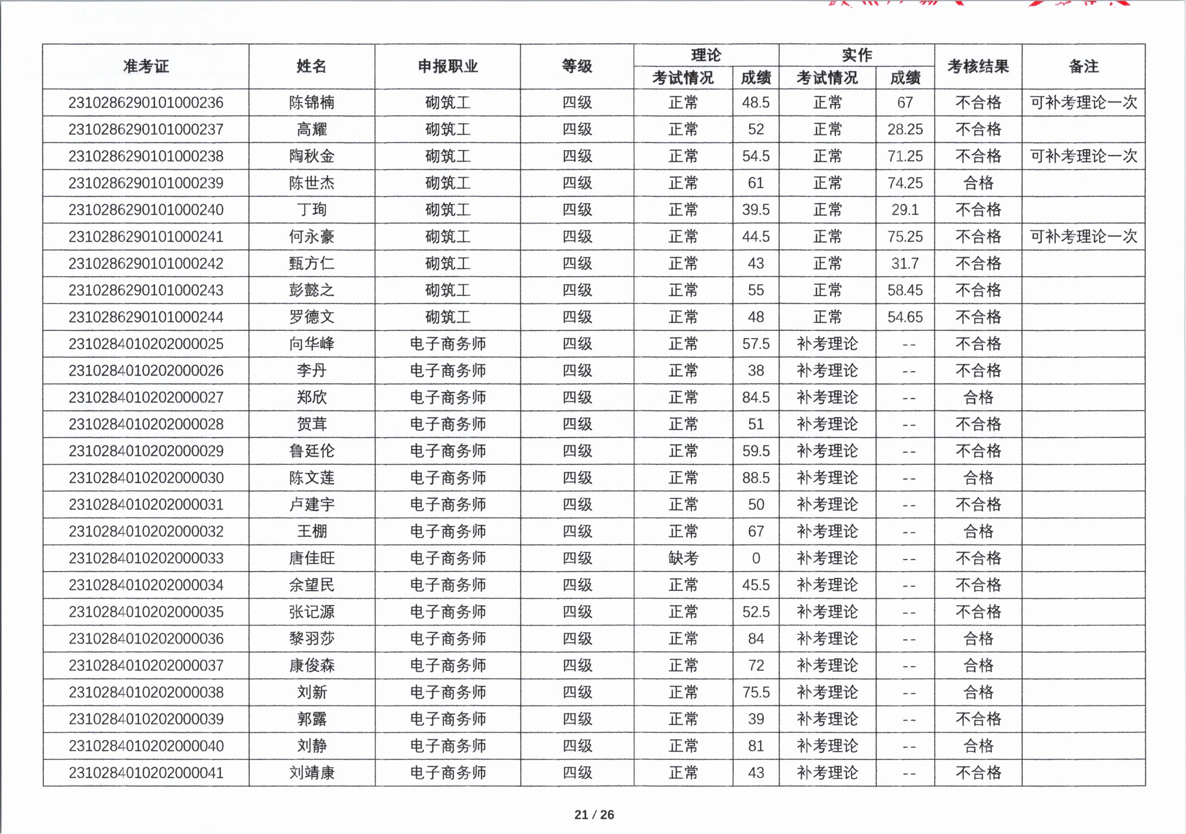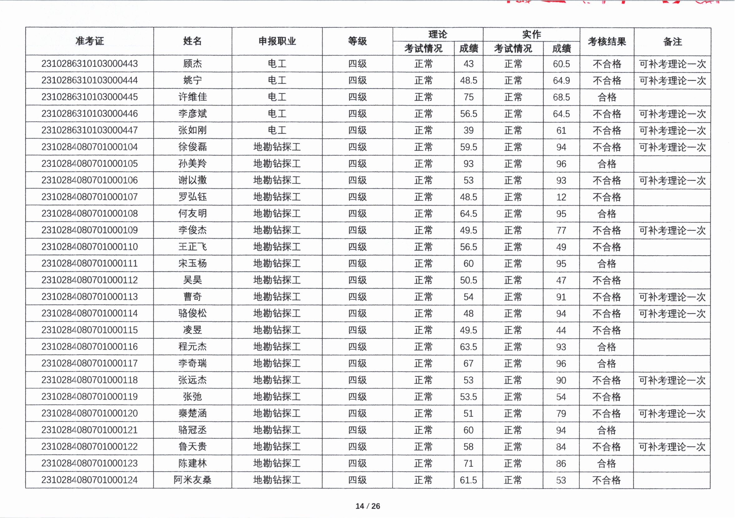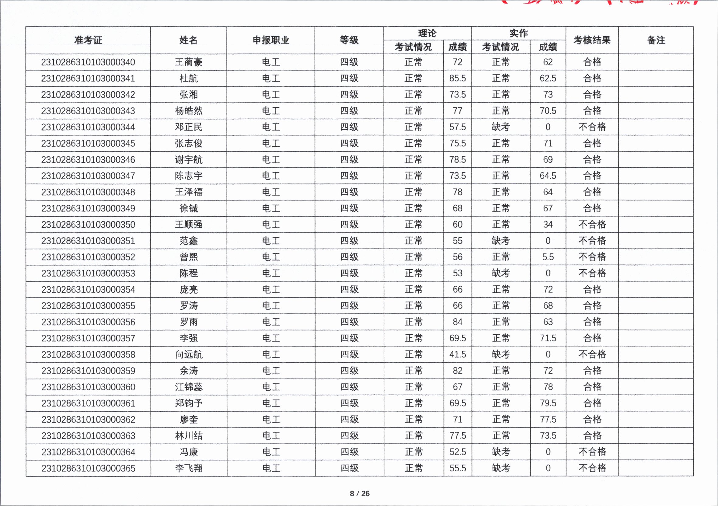 关于2023年第四期职业技能等级认定考核成绩的公示