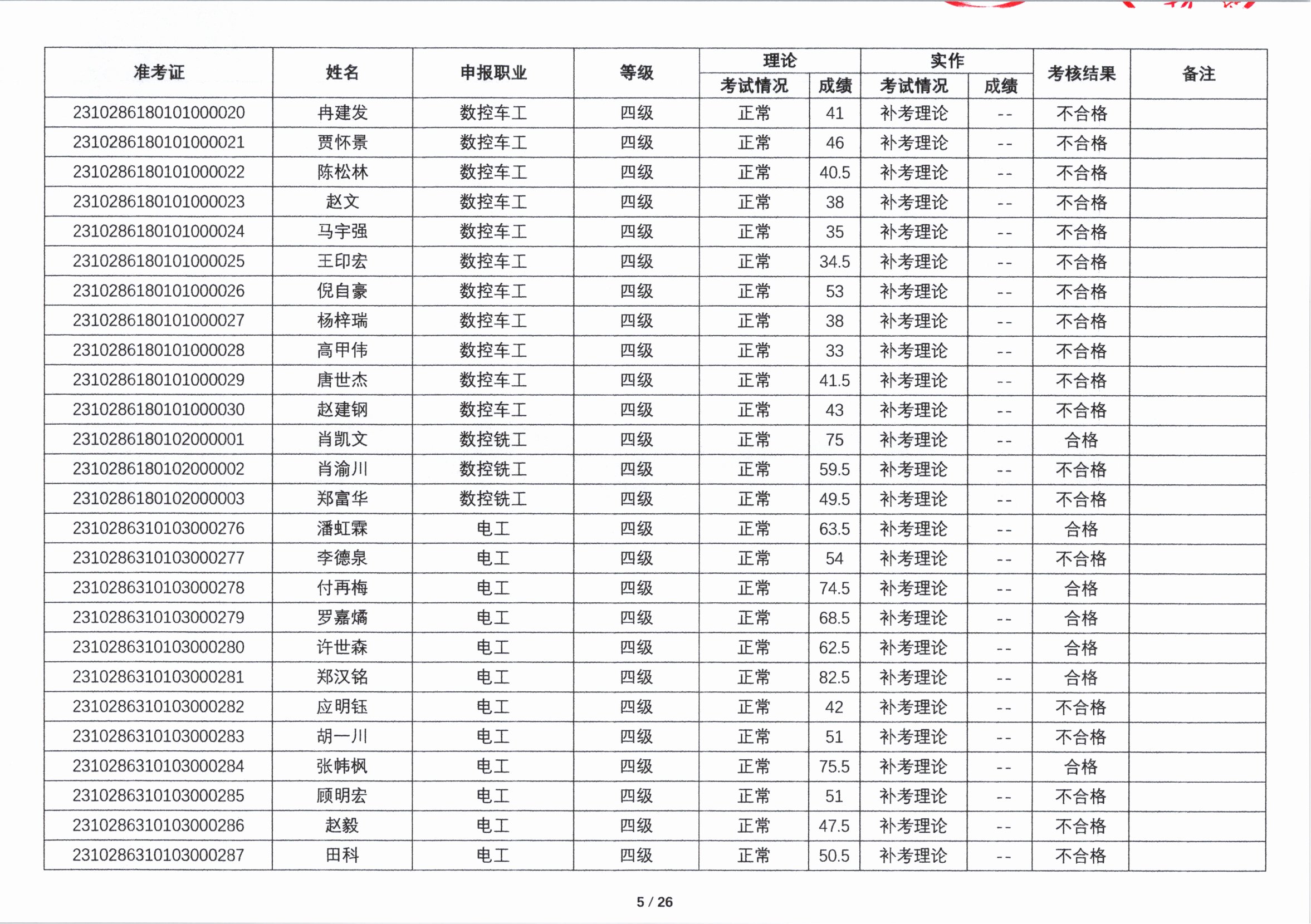 关于2023年第五期职业技能等级认定考核成绩的公示