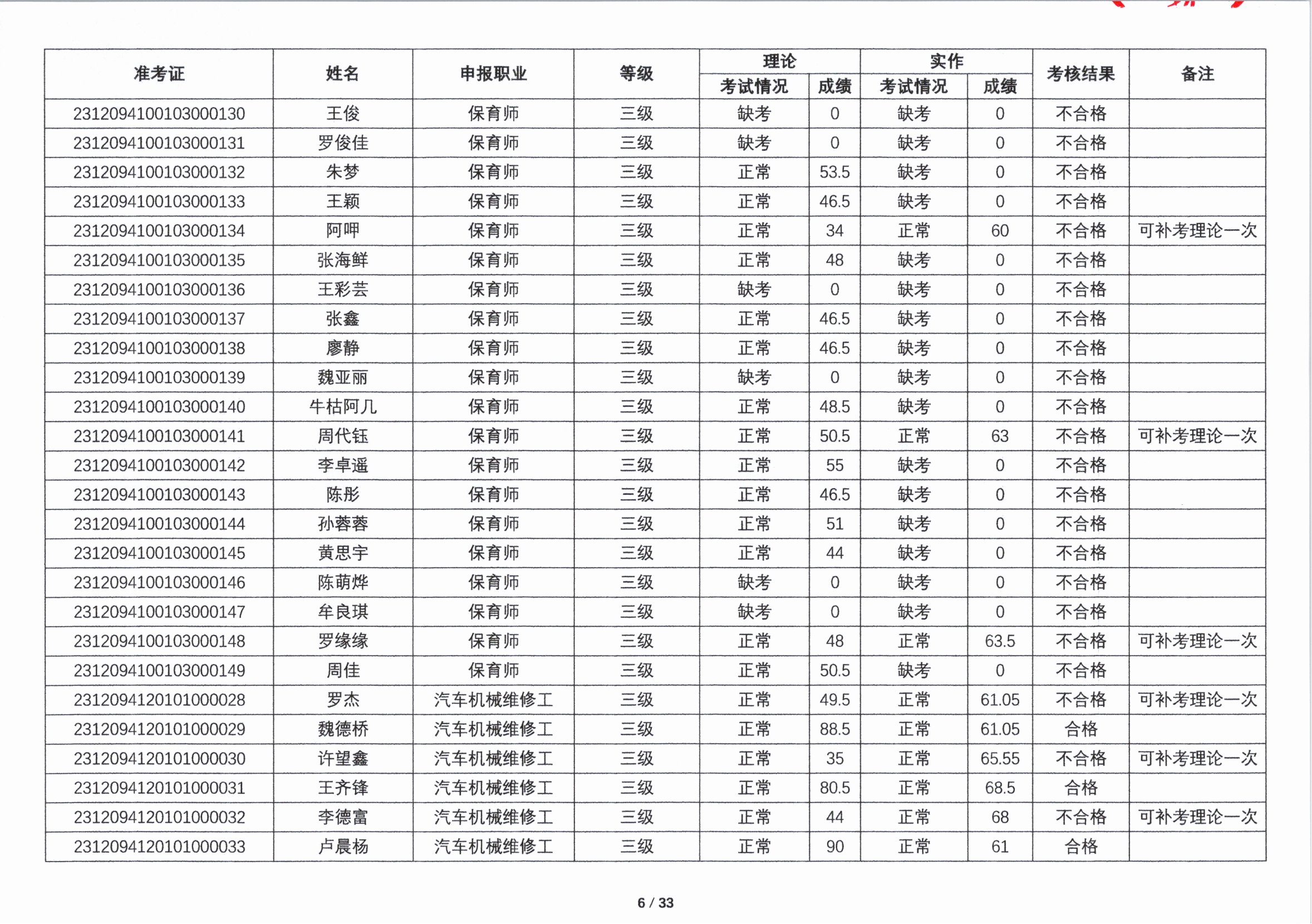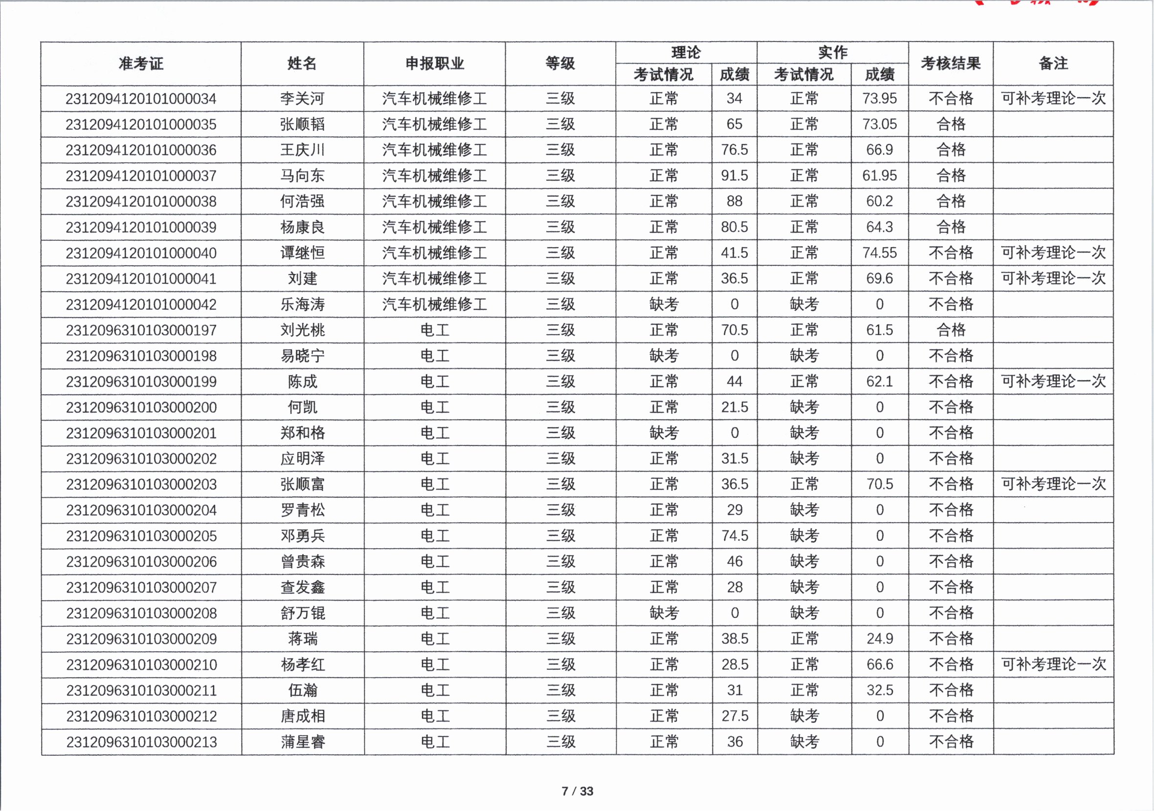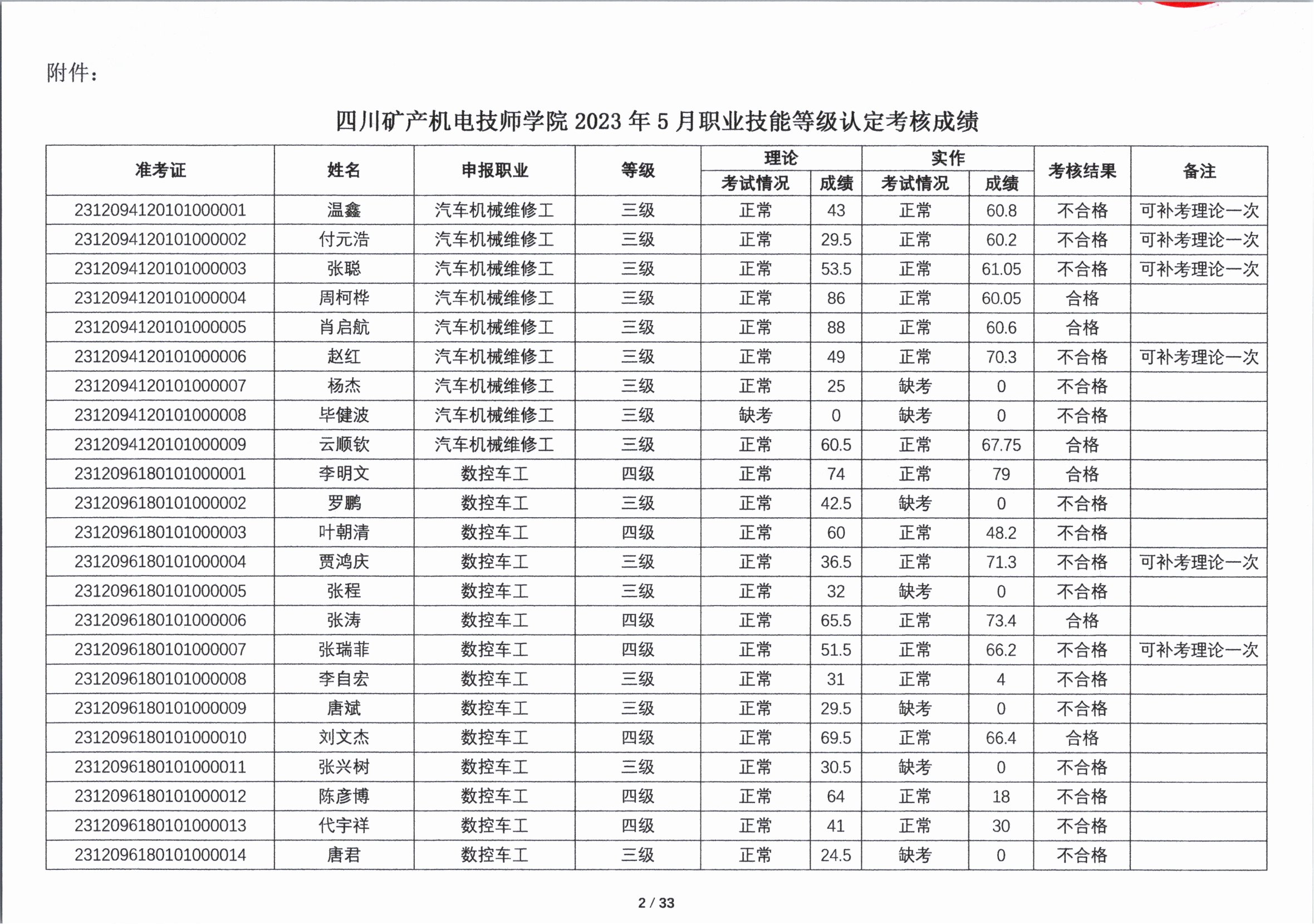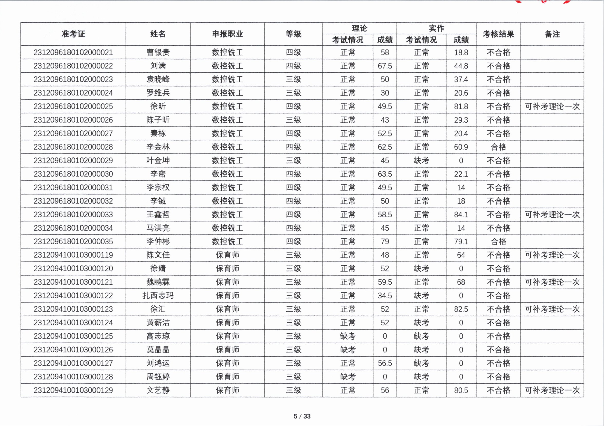 关于2023年第五期职业技能等级认定考核成绩的公示