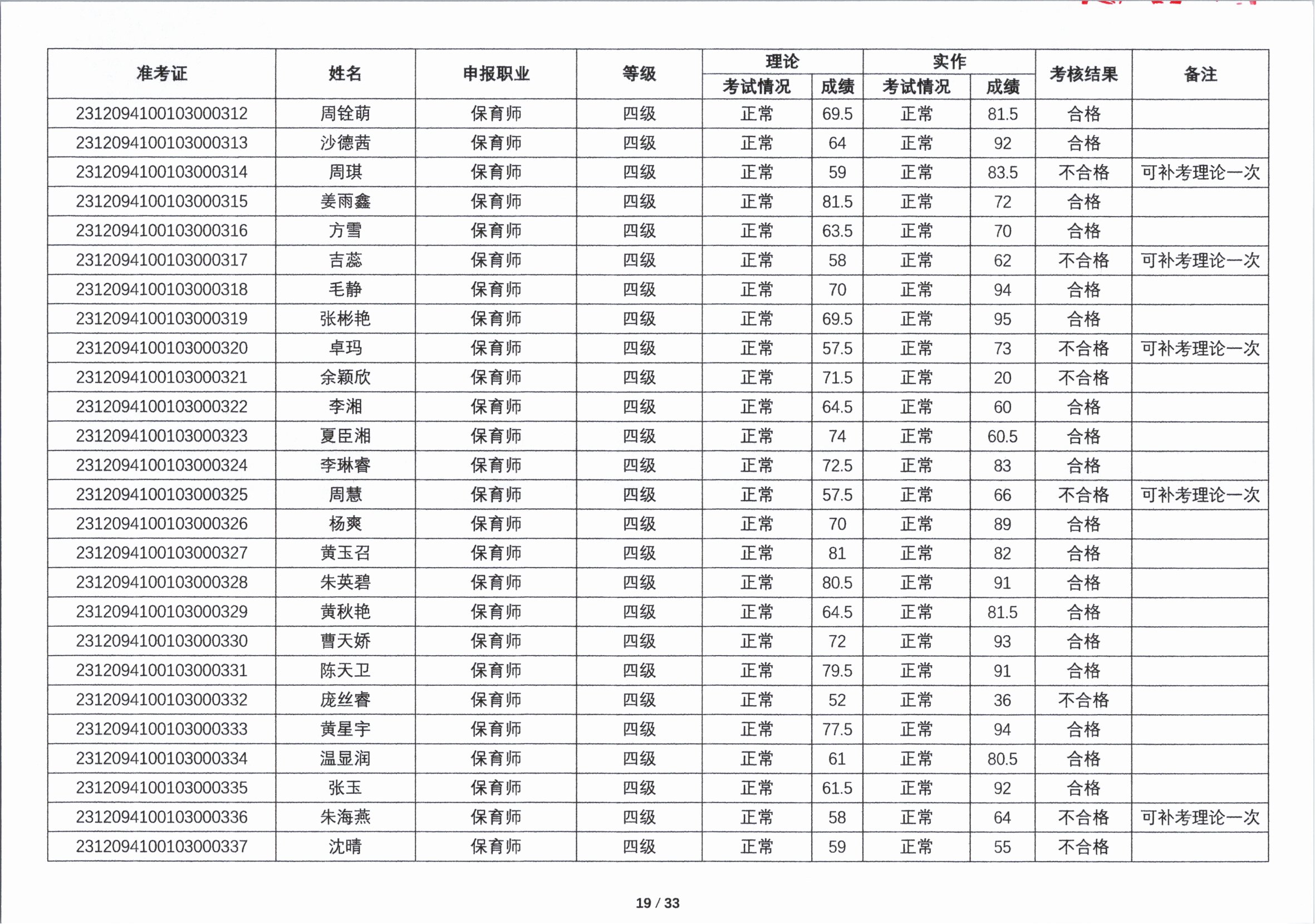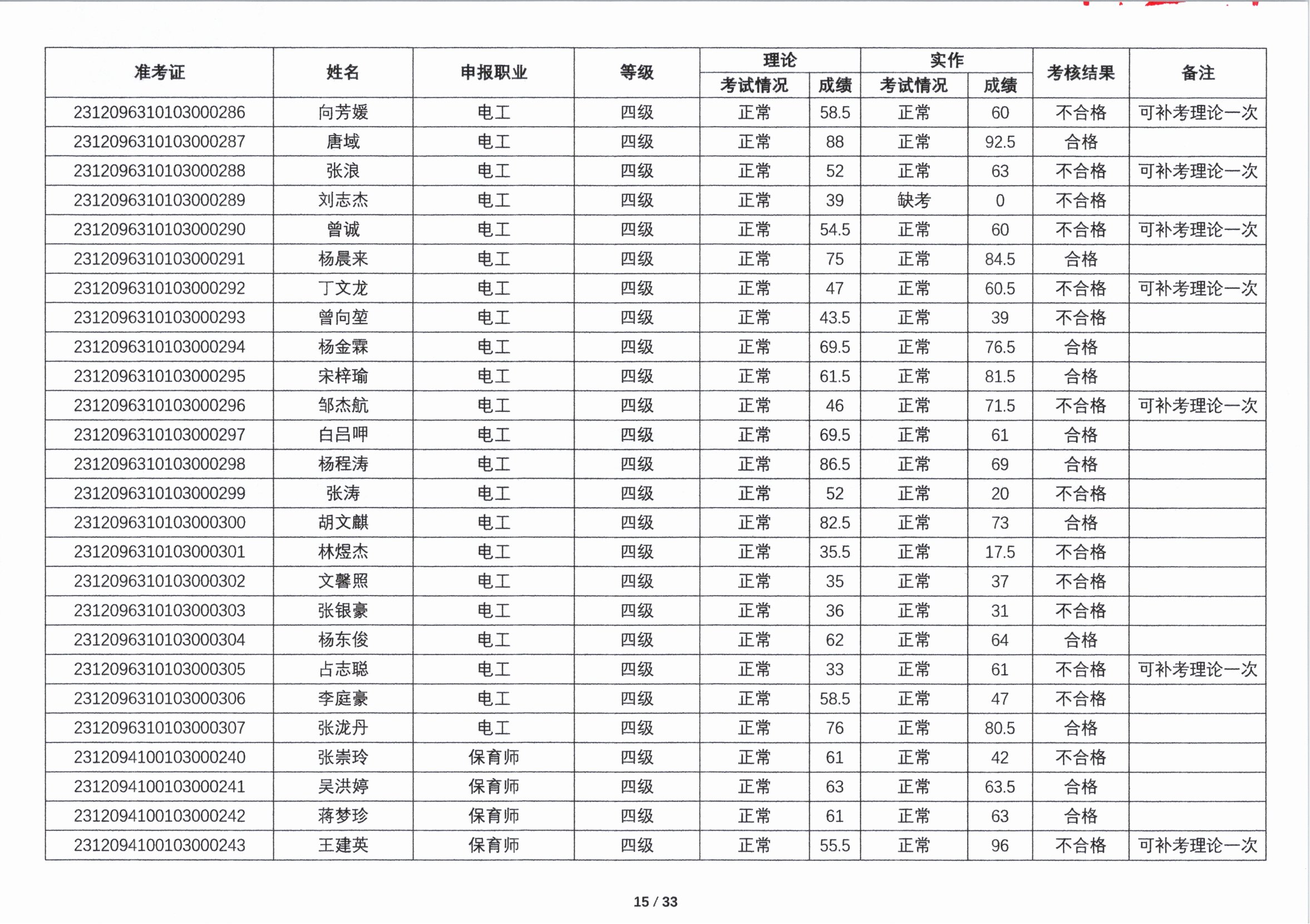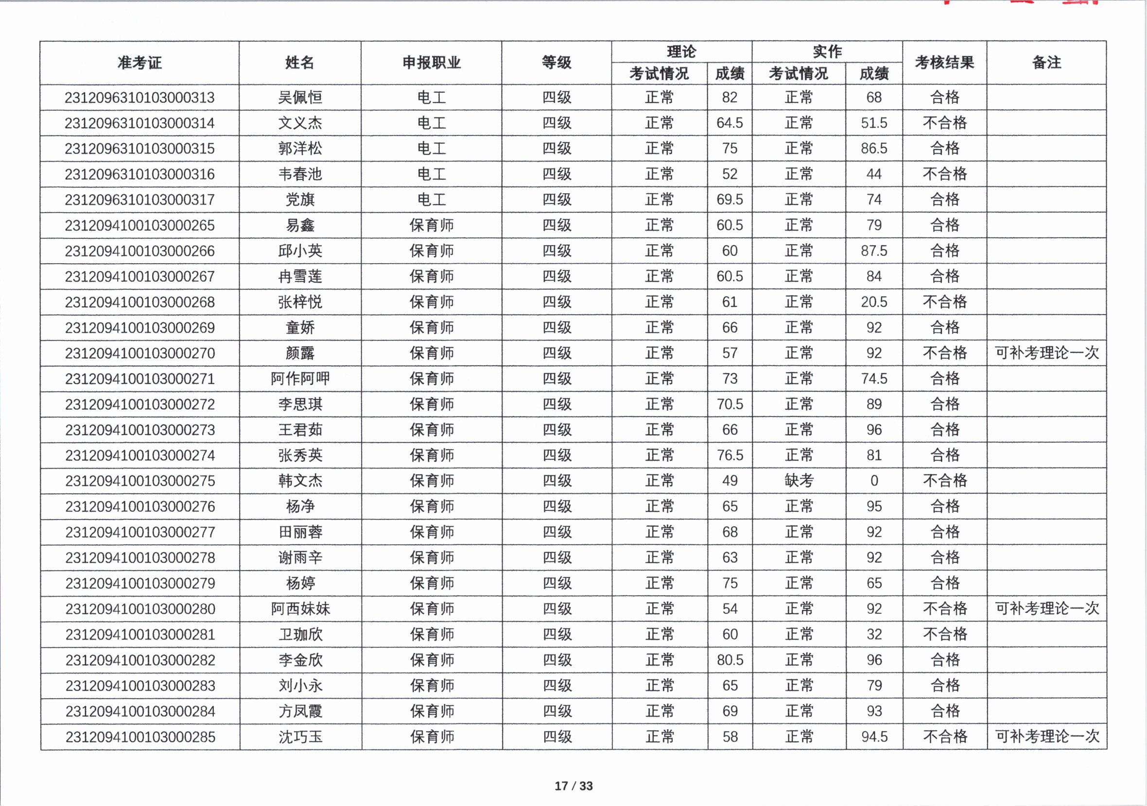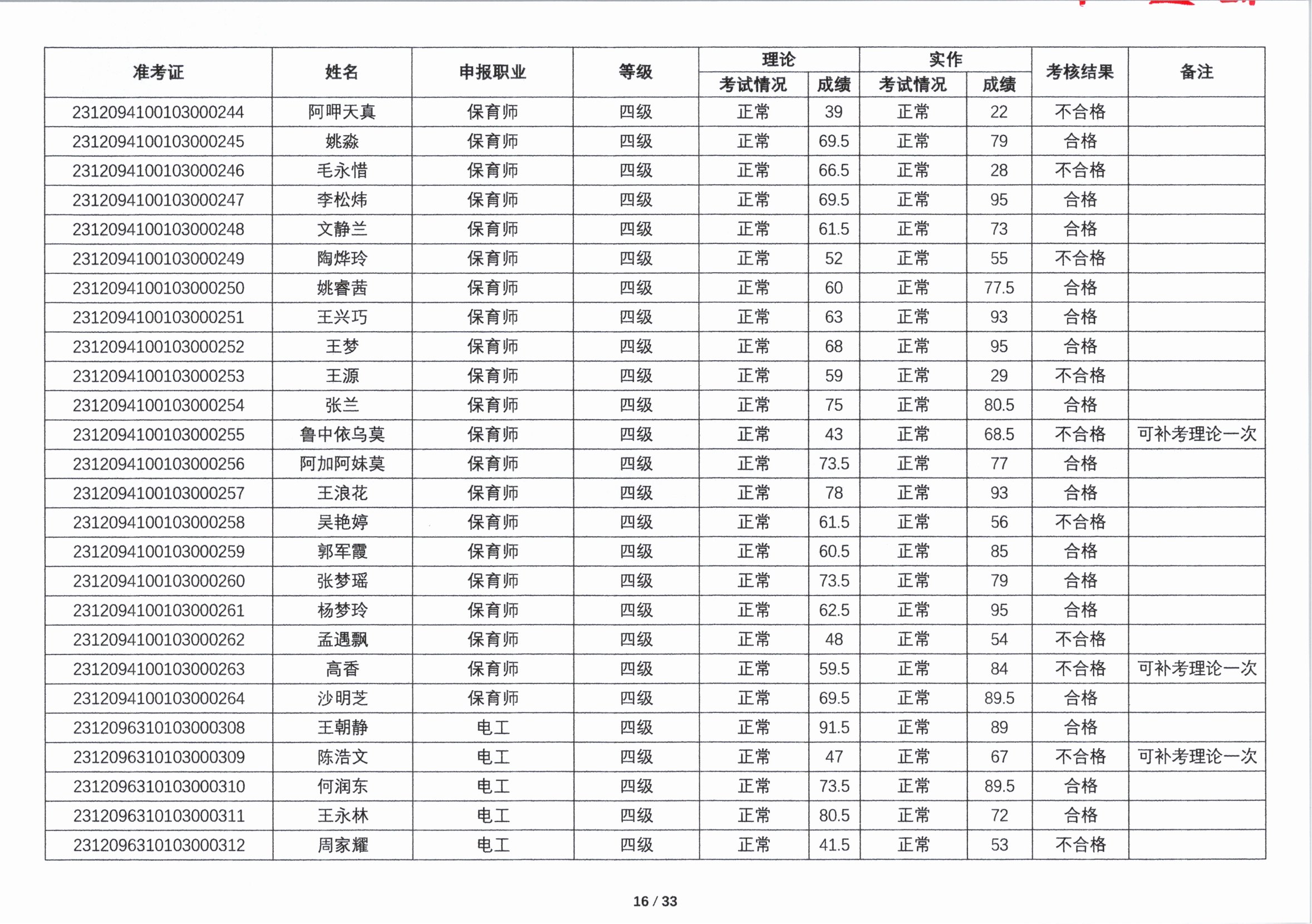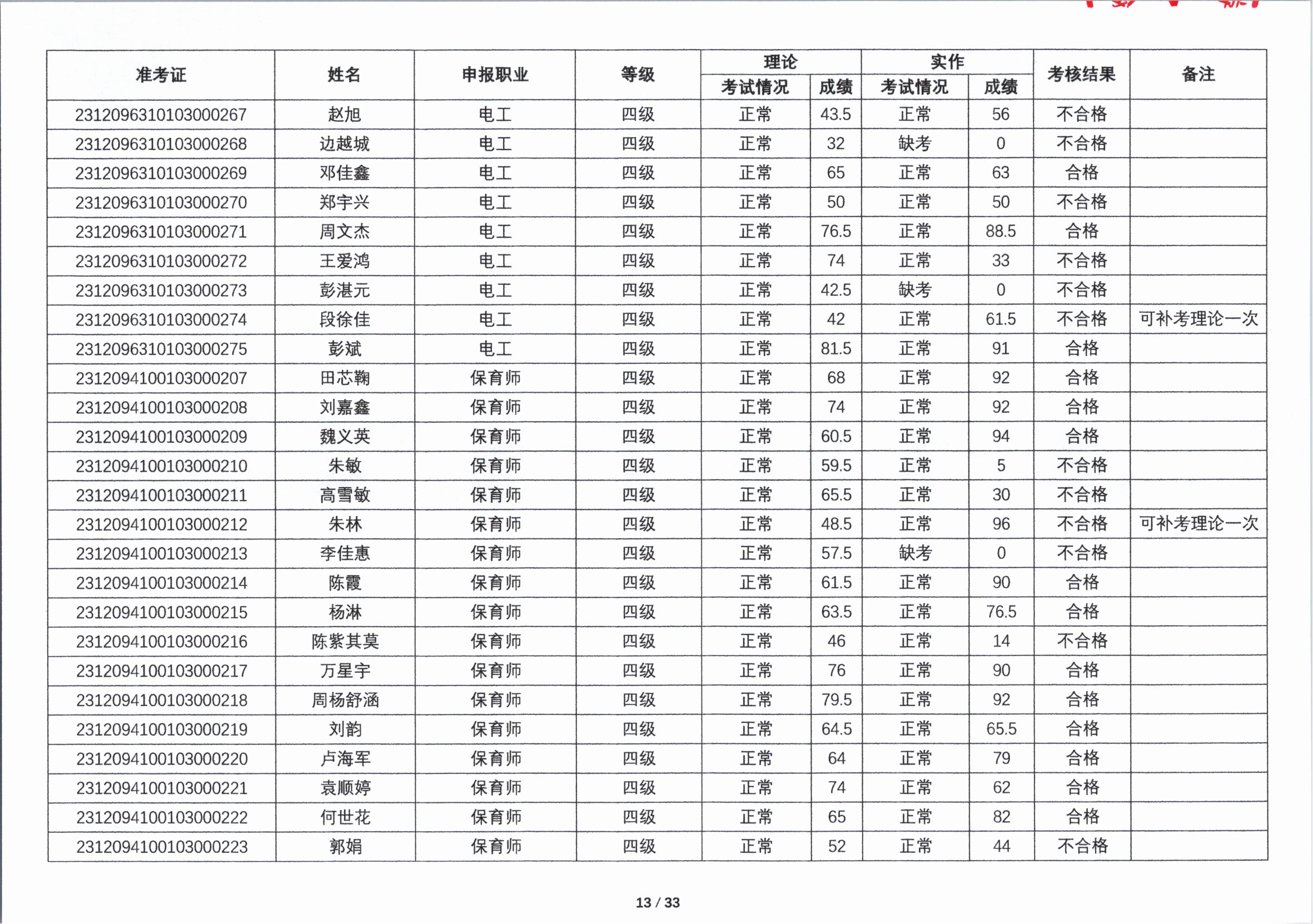 关于2023年第四期职业技能等级认定考核成绩的公示
