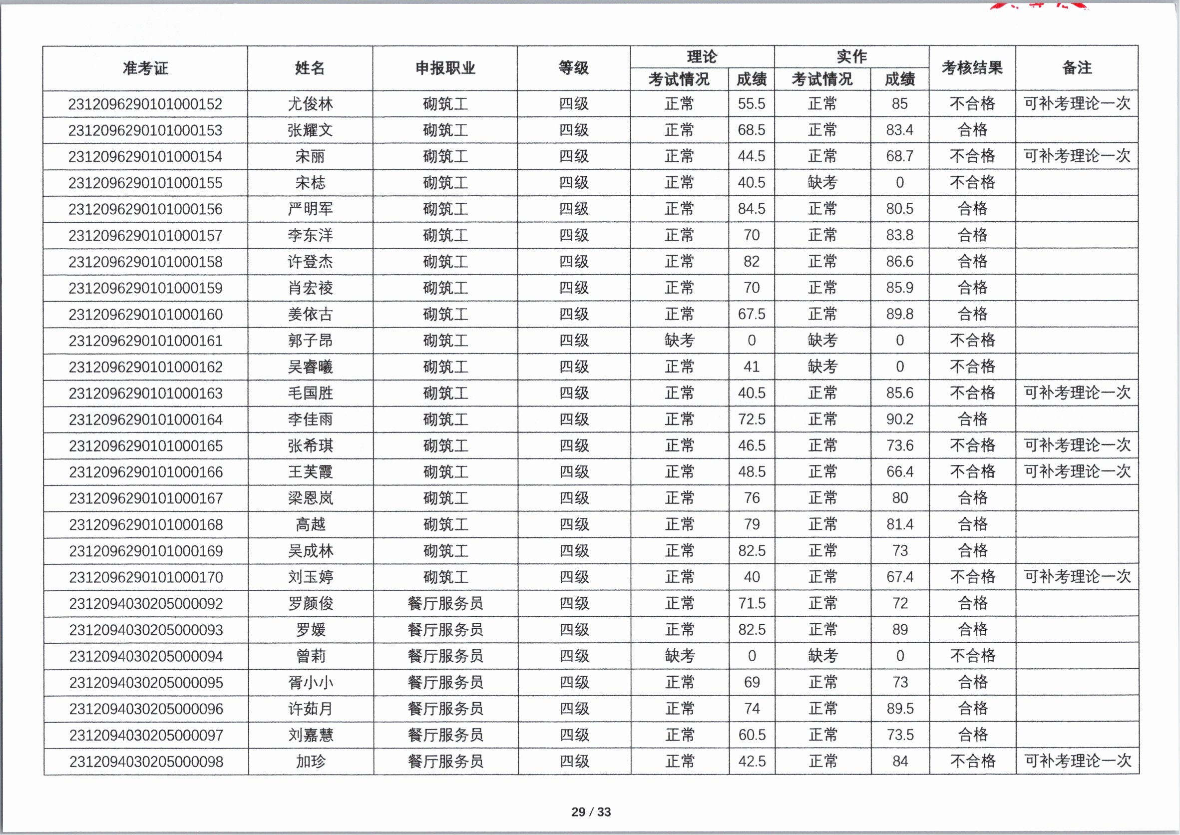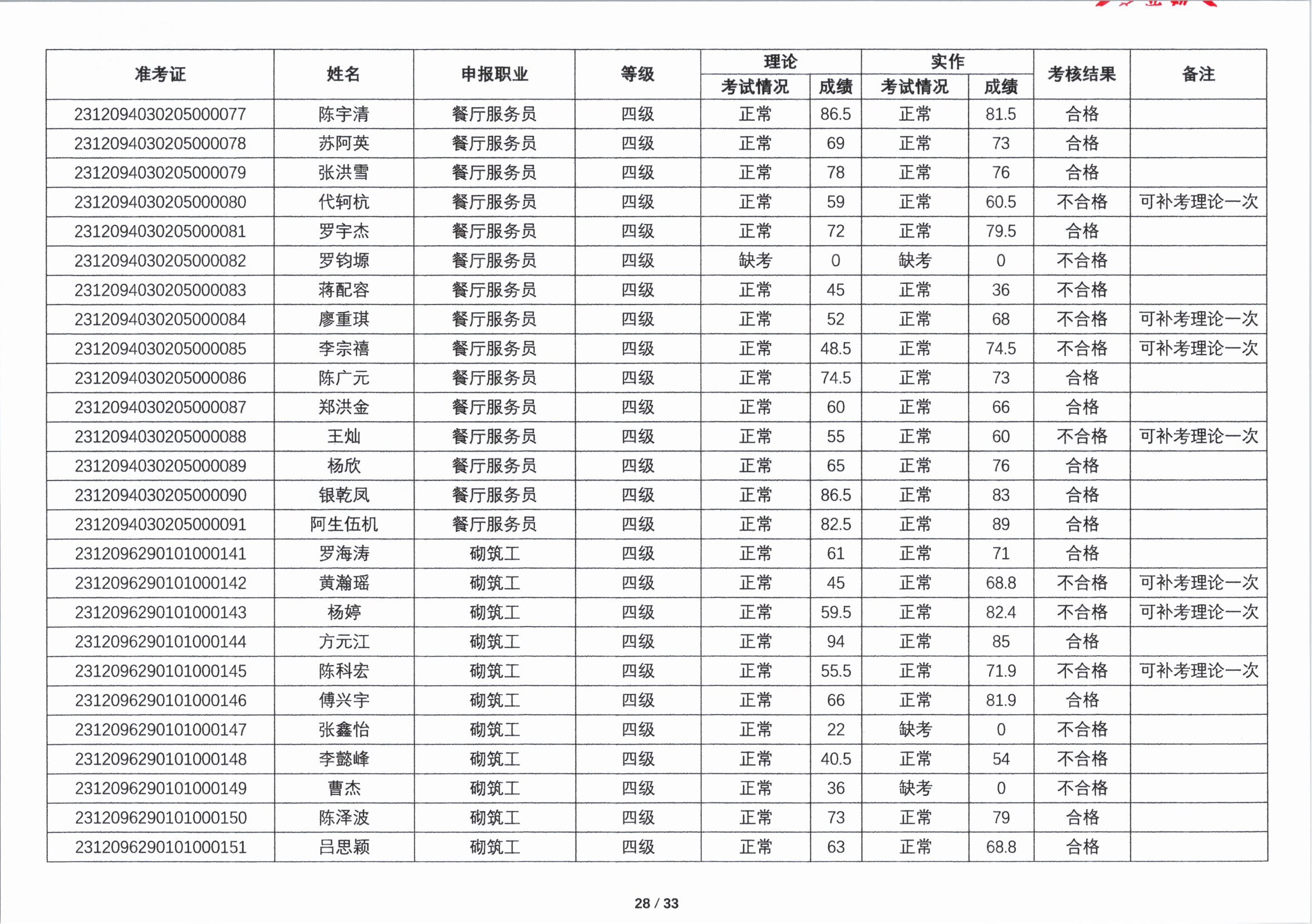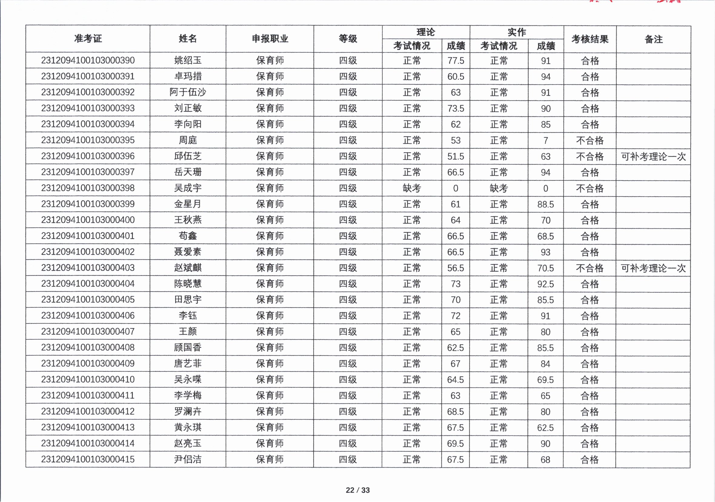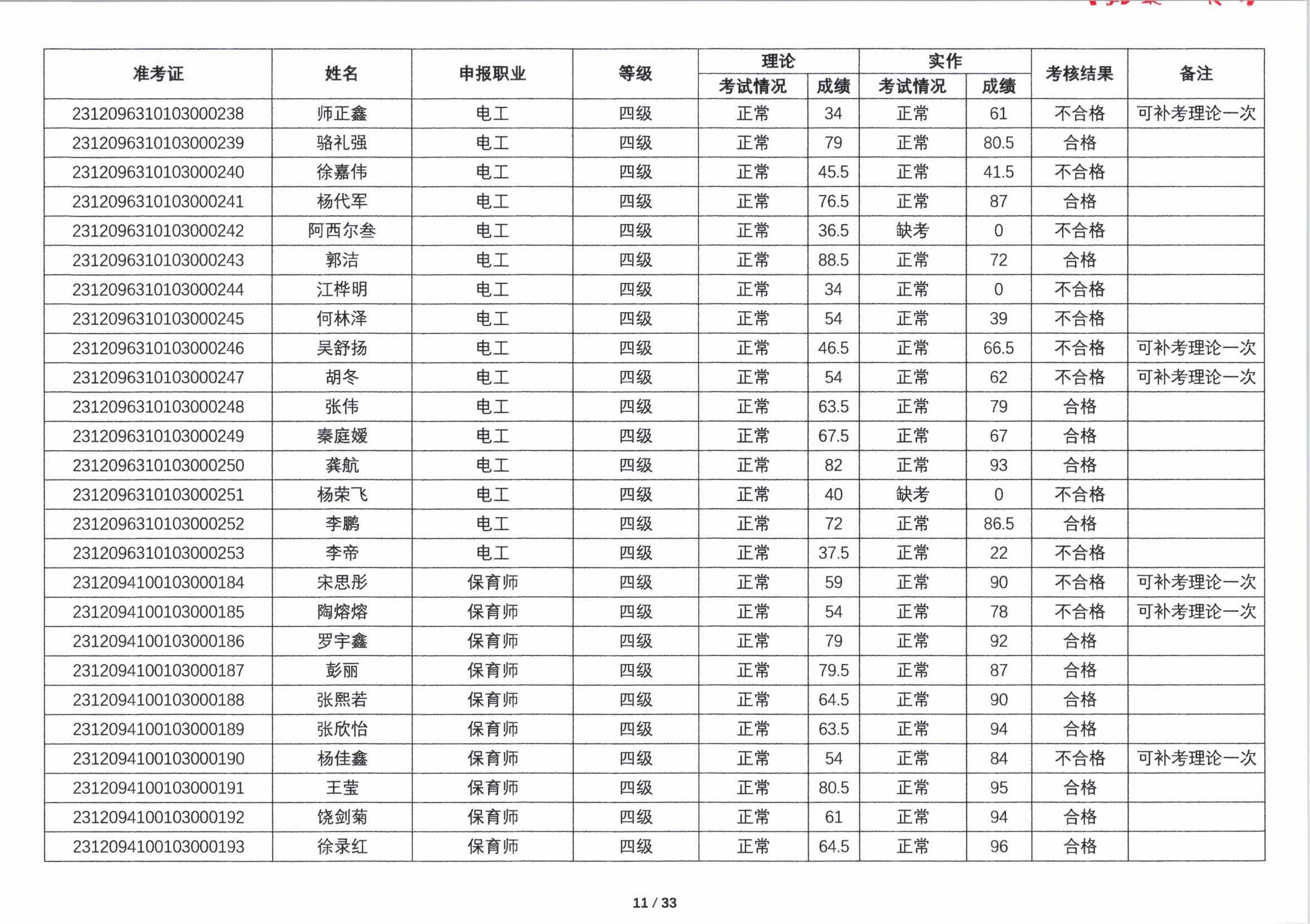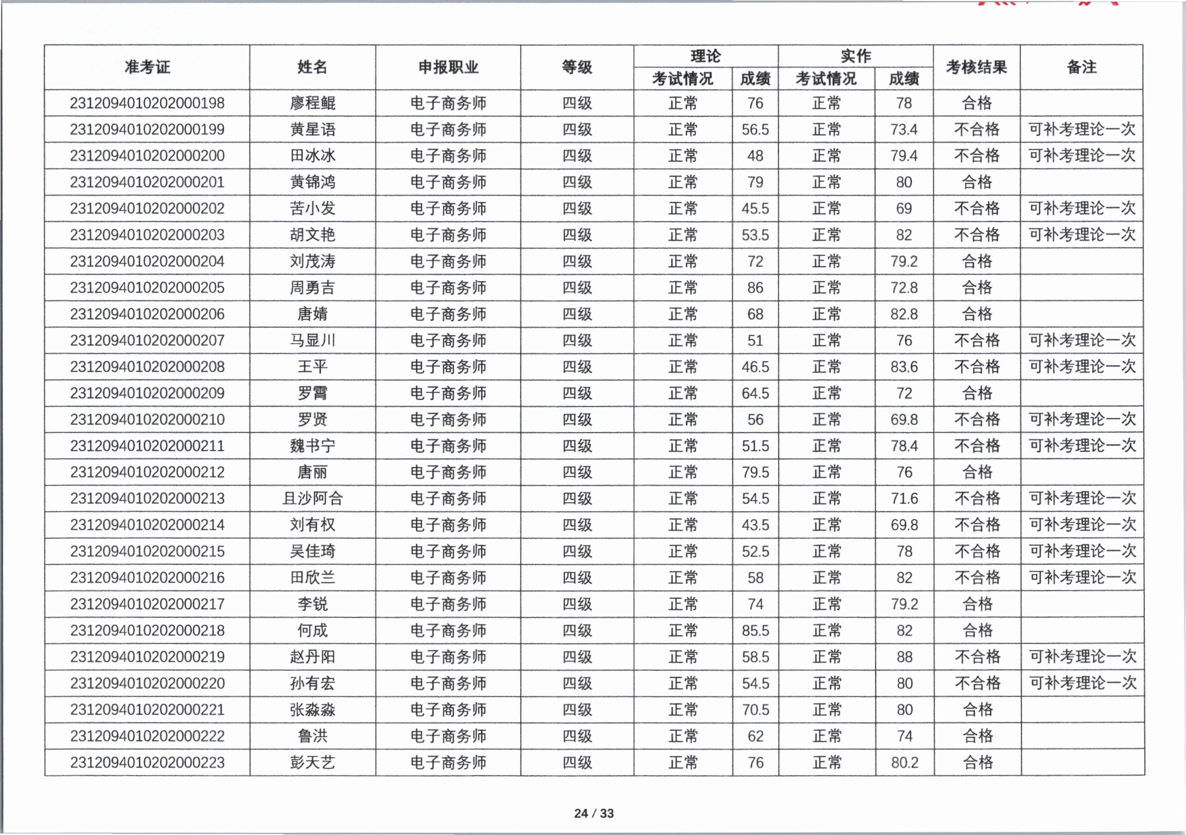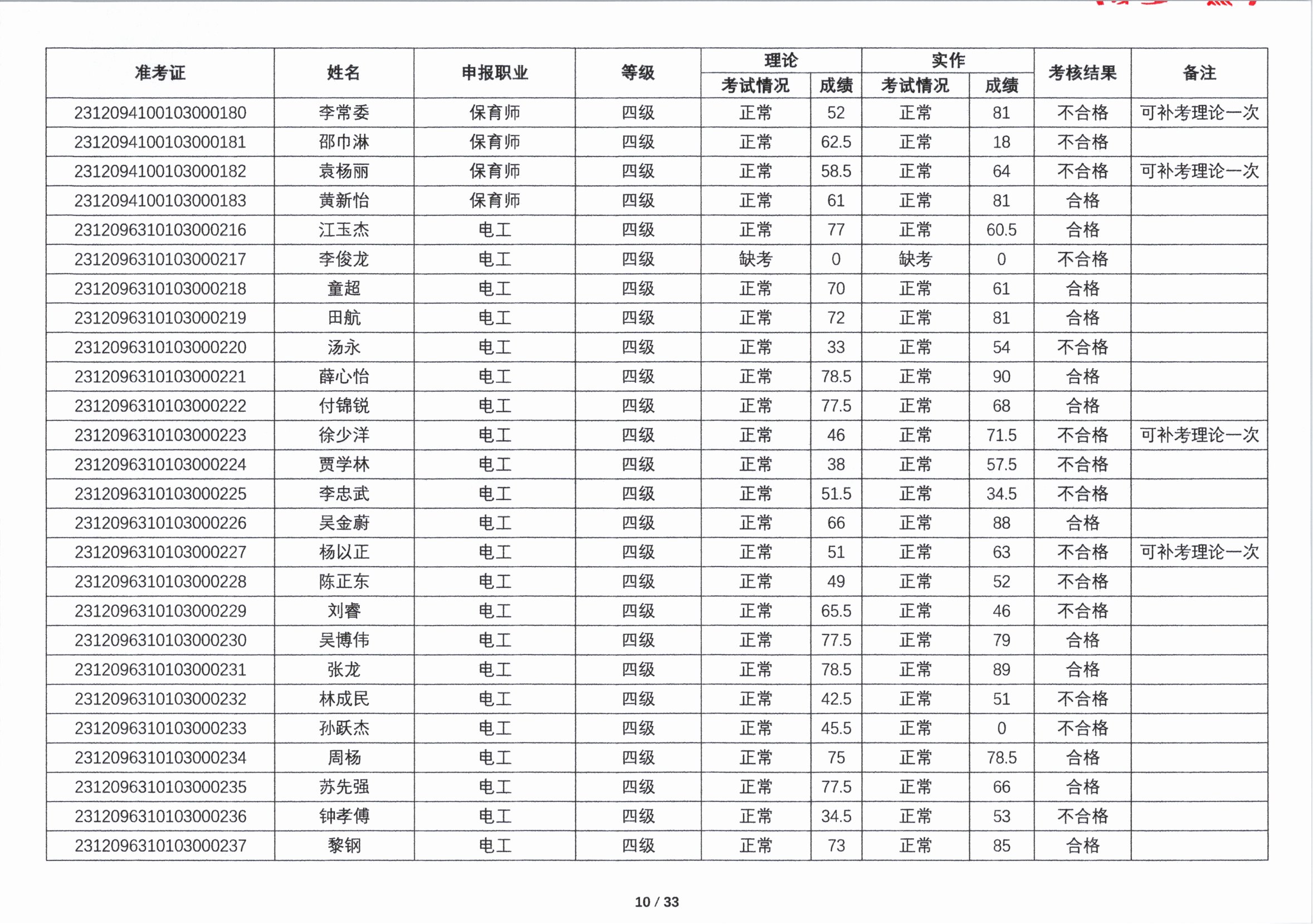 关于2023年第四期职业技能等级认定考核成绩的公示