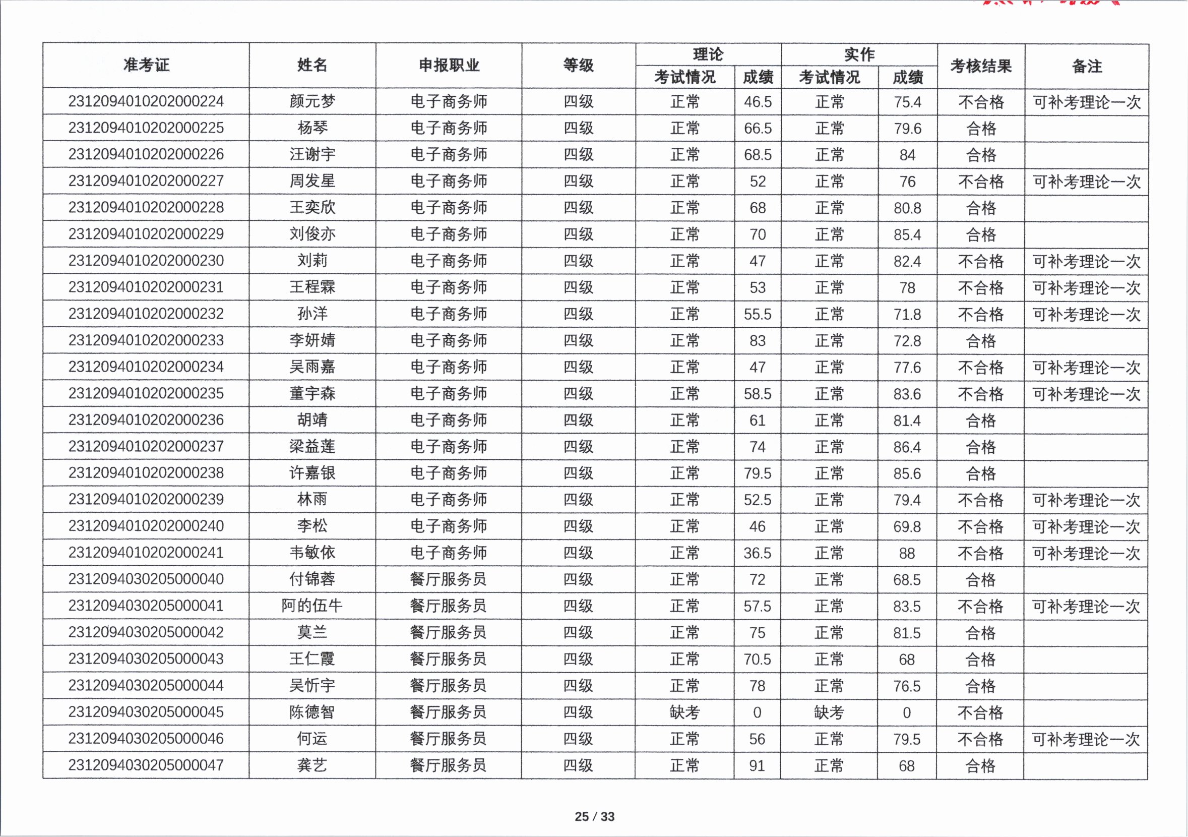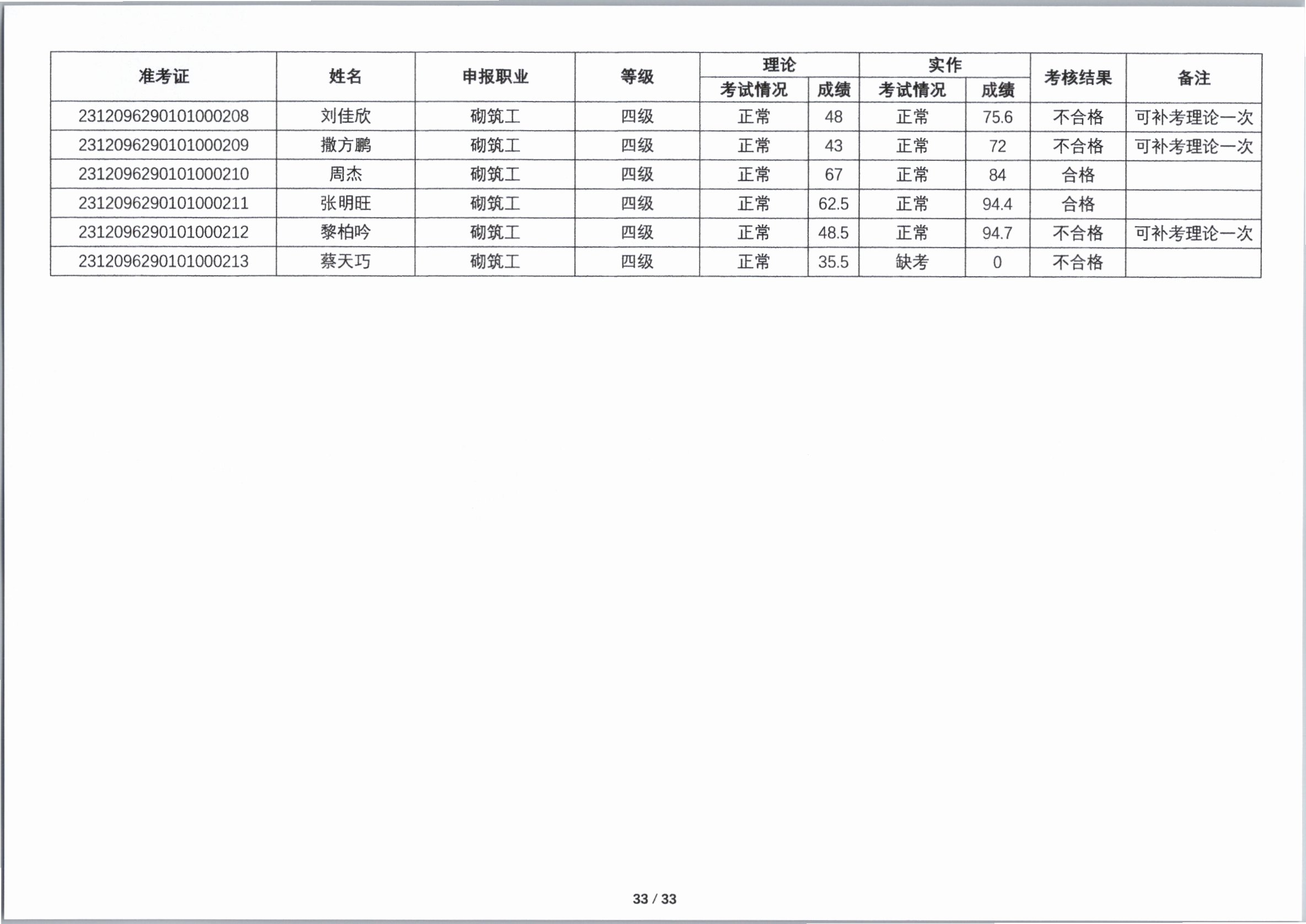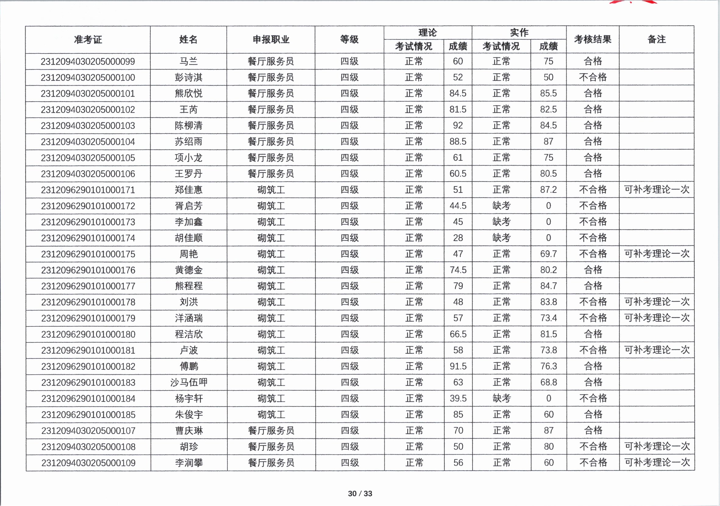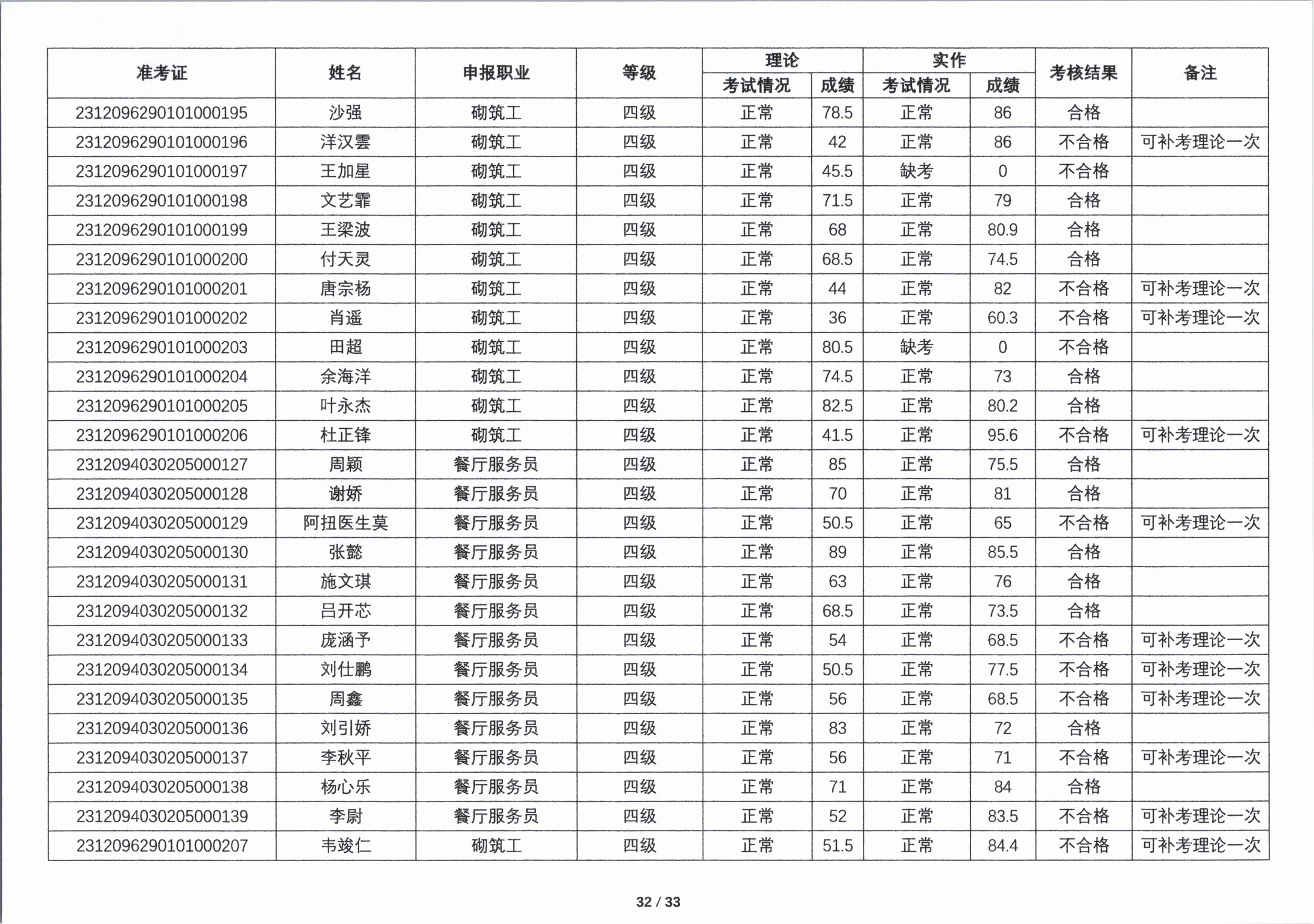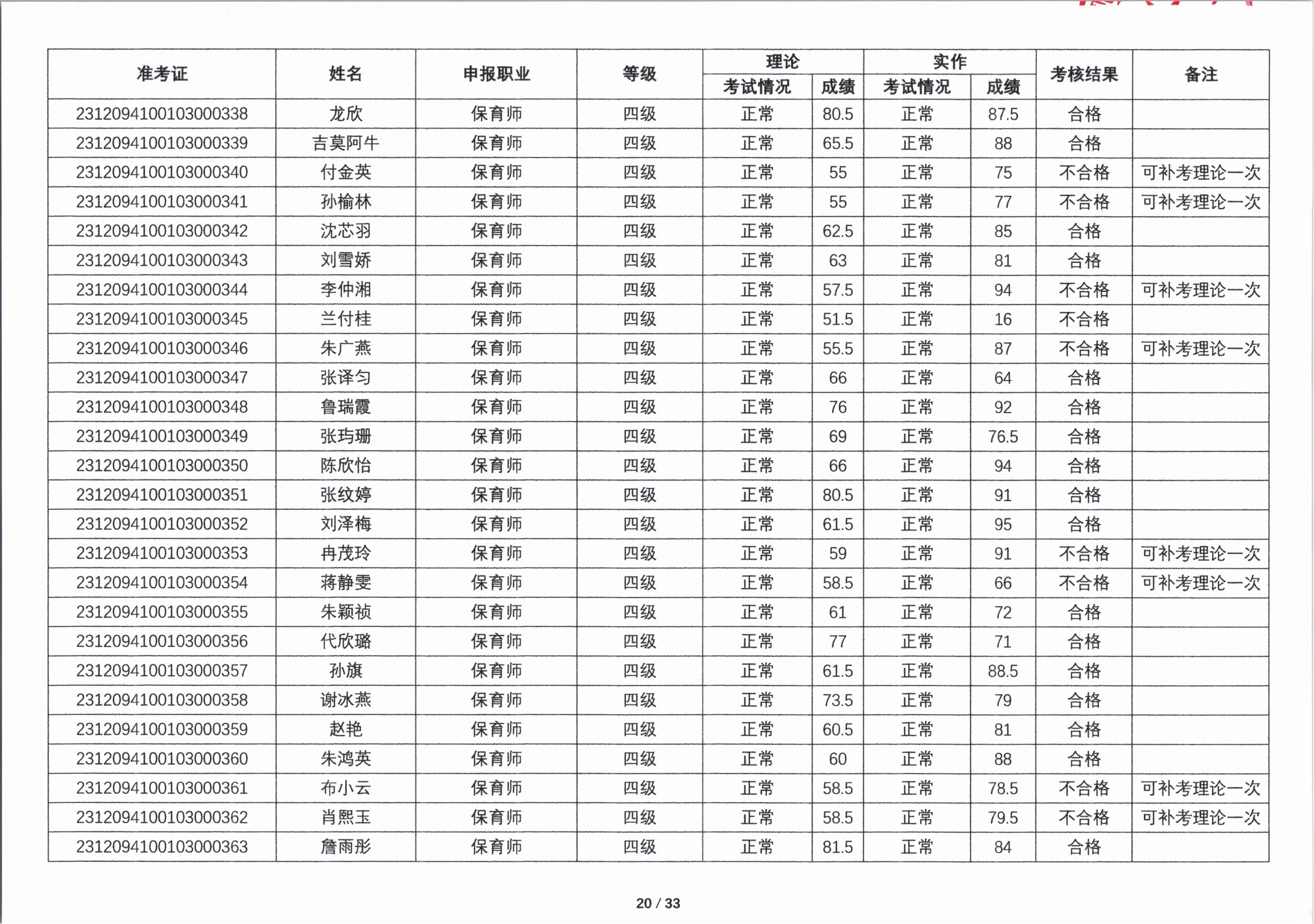 关于2023年第四期职业技能等级认定考核成绩的公示