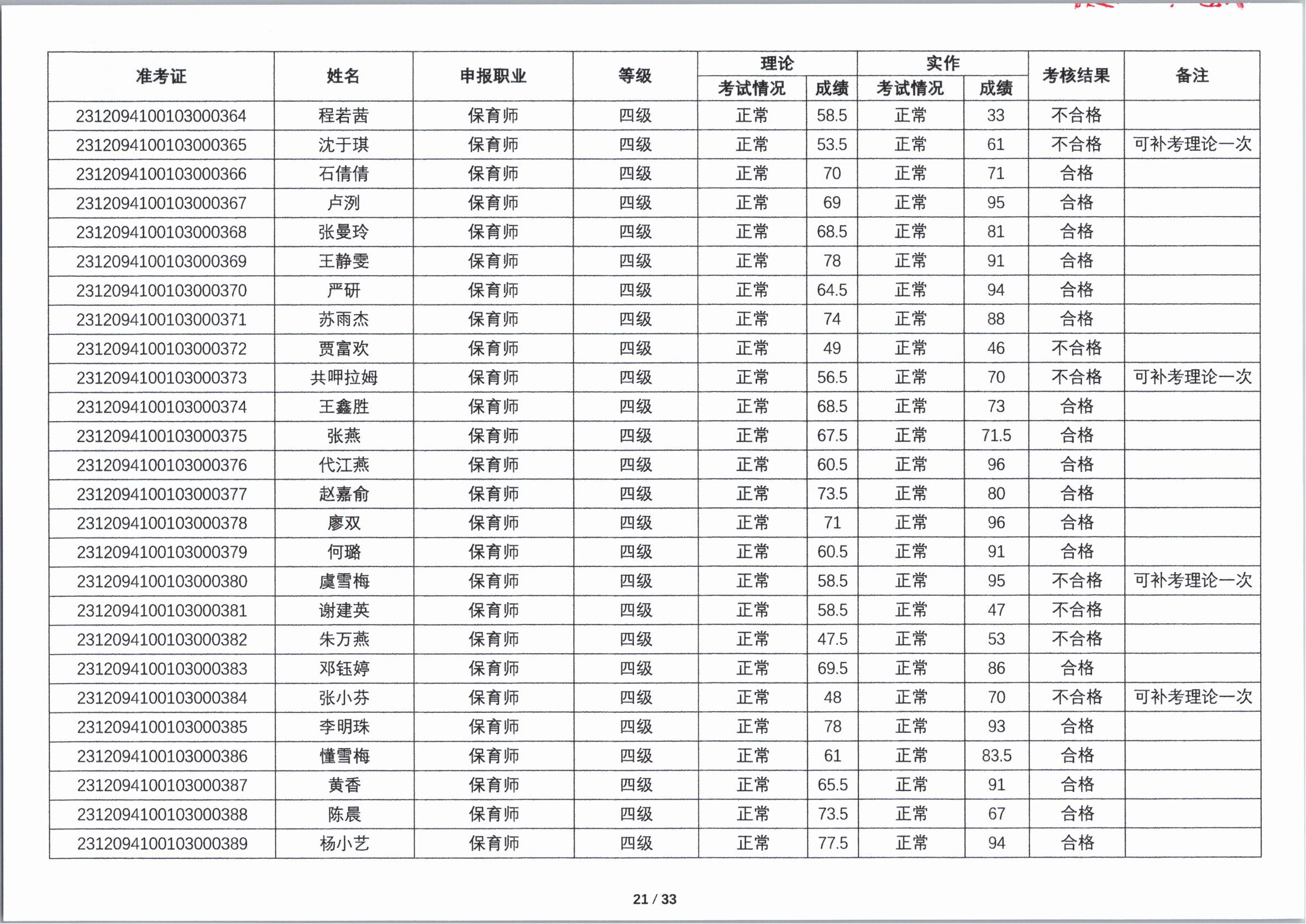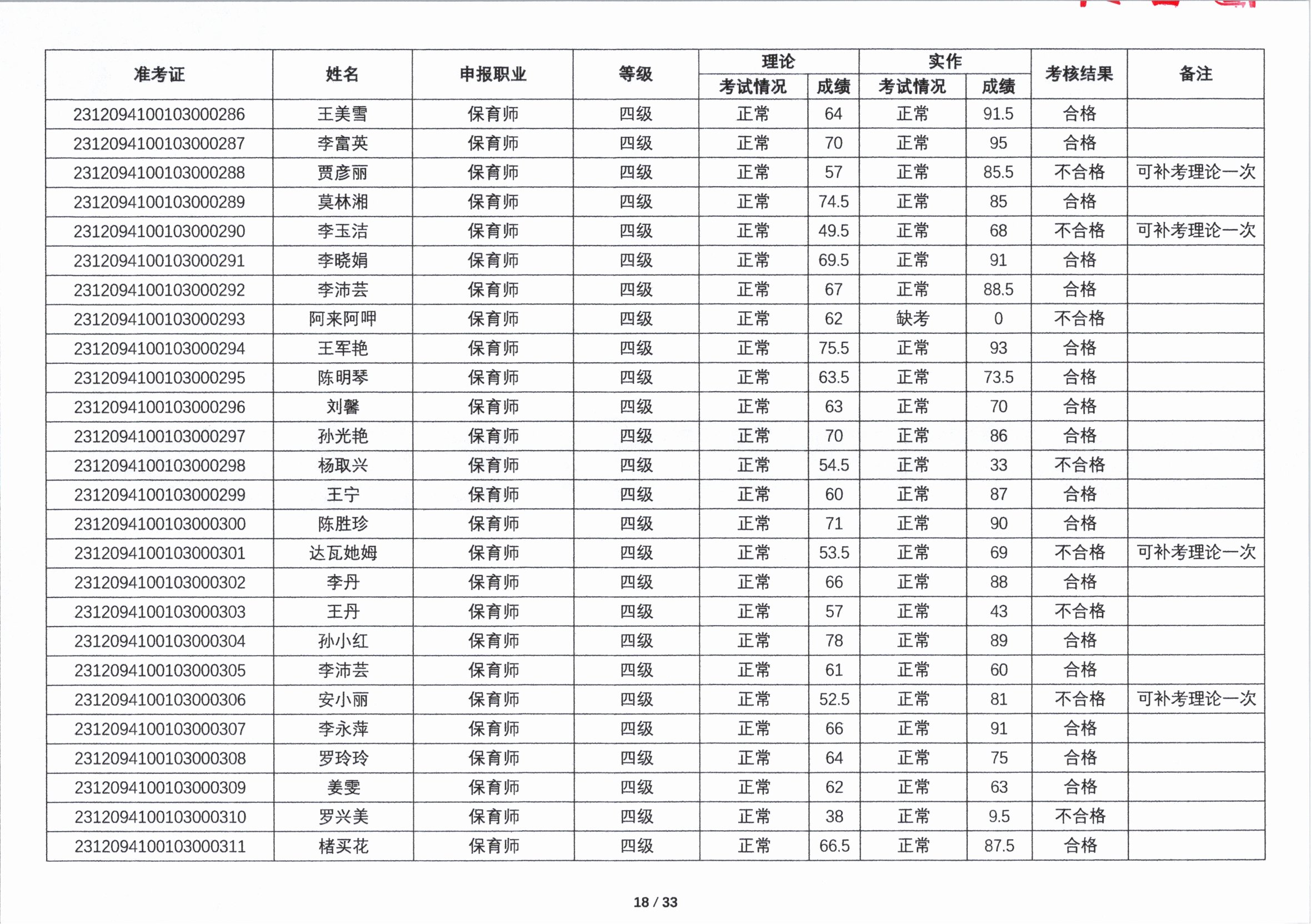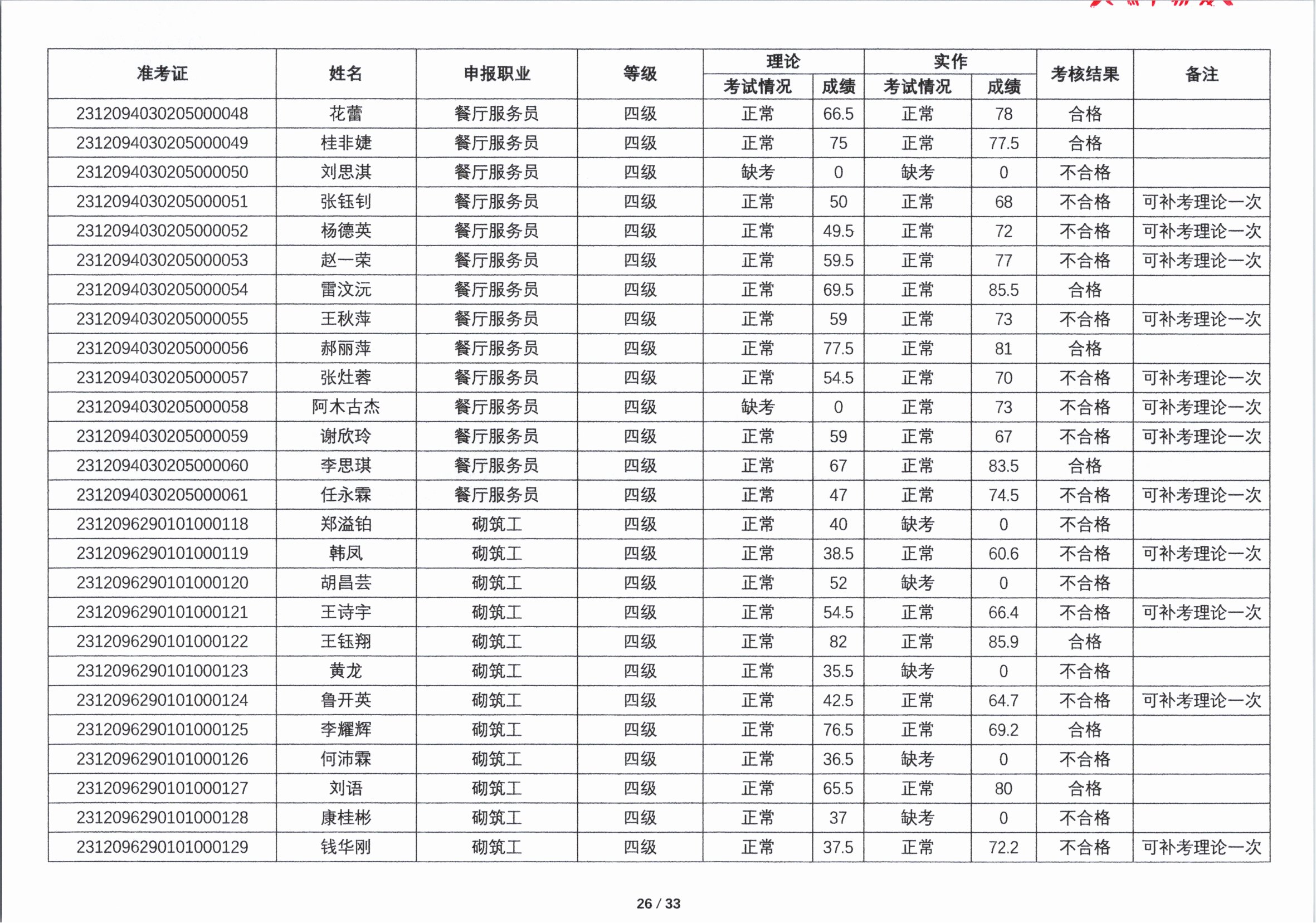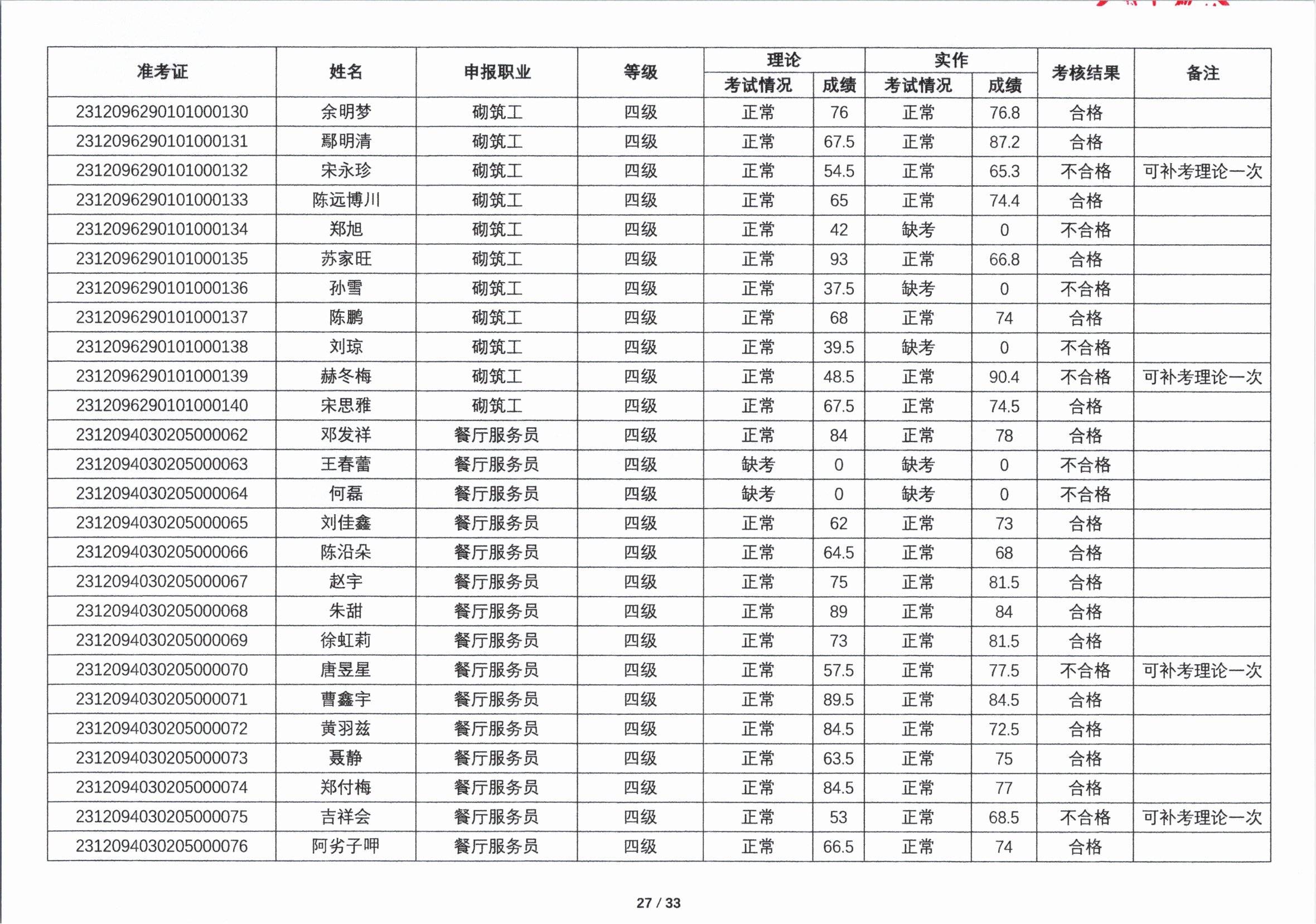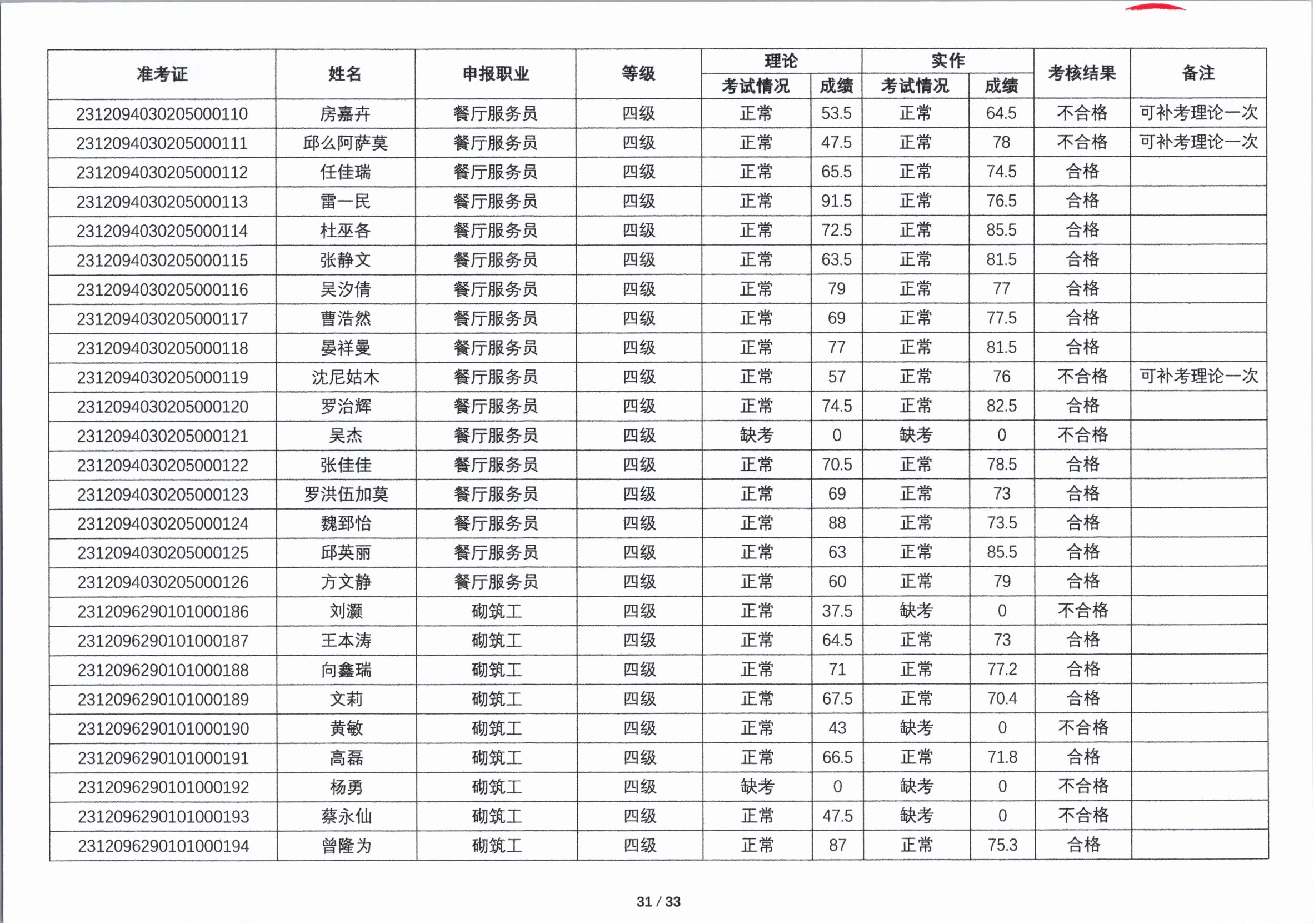 关于2023年第四期职业技能等级认定考核成绩的公示