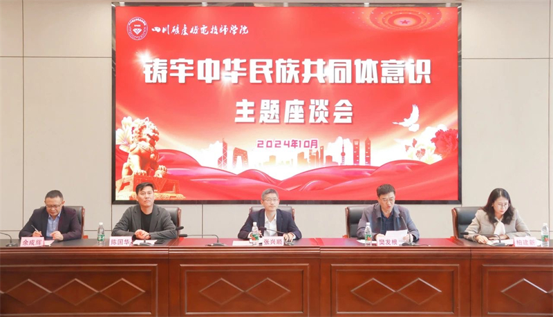 为深入学习贯彻习近平总书记关于加强和改进民族工作的重要思想,引导学生牢固树立休戚与共、荣辱与共、生死与共、命运与共的共同体理念,凝聚“听党话、感党恩、跟党走”的思想共识,进一步营造民族团结的良好校园氛围,10月15日,学院在第二学术报告厅组织召开“铸牢中华民族共同体意识”主题座谈会。院党委委员、副院长张兴顺,崇州市委统战部副部长、崇州市民宗局局长樊发根出席并讲话,来自学院内19个少数民族的学生代表100余人参加。