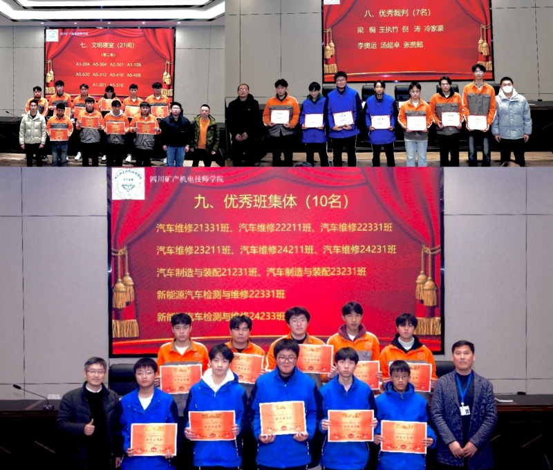 大会对2024年度获得“技能标兵”、“综合素养优秀奖”、“学生会优秀干部”、“优秀社团成员”、“优秀裁判”的优秀个人以及“体育活动比赛奖”、“文明寝室”、“优秀班集体”优秀集体进行了表彰。参会教师为优秀个人和优秀集体学生代表颁发了荣誉证书。