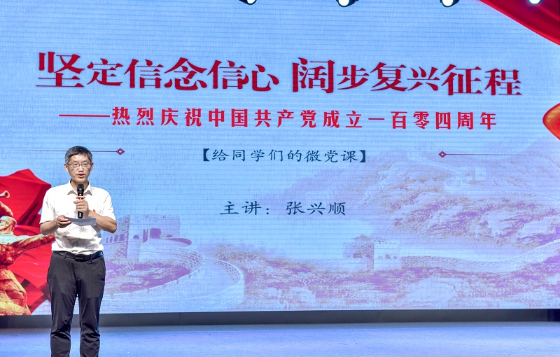 张兴顺作总结讲话,肯定了院学生会与心理协会过去一学期的工作成果,向获奖的同学表示祝贺。最后,在恰逢“七·一”的特殊时刻,张兴顺给同学们上了一堂生动的微党课。党课以“坚定信念信心,阔步复兴征程”为主题,结合92岁新党员游本昌坚守初心、老而弥坚追求入党的故事,以及最新党内统计公报数据所展现出的党的蓬勃生机与强大凝聚力,鼓励同学们要坚定理想信念,勇担时代使命,以坚定的信心和饱满的热情阔步走在实现中华民族伟大复兴的征程上,在新时代展现新作为。