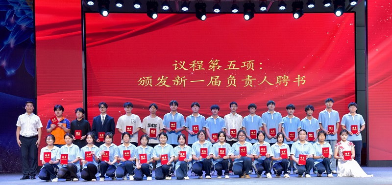 陈国华宣读了表彰文件,出席的领导和老师为获奖同学颁发荣誉证书,此次大会共表彰了158名优秀成员,其中143名同学荣获“工作积极分子”称号,15名同学荣获“优秀学生干部”称号。教师张明利宣读新一届负责人名单,完成学生干部新老交替,新一届负责人代表张春阳和黄祚俊杰分别发言,表示将秉持服务同学的宗旨,积极创新工作方式方法,助力同学们阳光成长。
