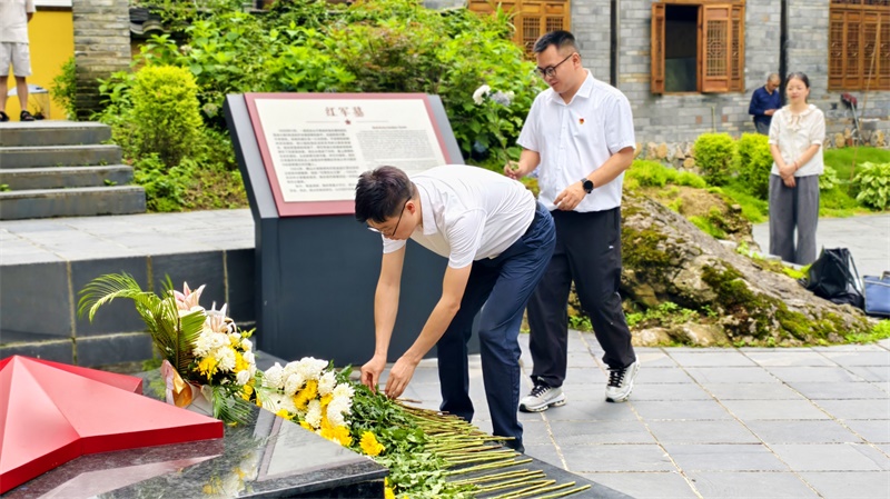 在庄严肃穆的红军烈士纪念碑前,全体党员整齐列队,肃立默哀,深切缅怀革命先烈。默哀毕,党员们在鲜艳的党旗下,重温入党誓词,一句句铿锵有力的誓言,彰显着党员们对党的忠诚,对革命精神的传承与坚守。随后,党员们手捧鲜花,缓缓走向烈士墓,献上花束,表达对先烈的无限敬仰。