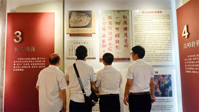 走进纪念馆,馆内陈列分为“乘风破晓”“血染横山”“鱼水情深”等五大主题板块,展示了100多幅历史照片和10多件历史文物。大家不时驻足观看,不时凝神静思,不时细声交流学习感悟和启示。透过照片、文字,真切体会到在那个战火纷飞的峥嵘岁月,革命先烈们不怕牺牲、众志成城的革命精神和坚定理想信念、勇往直前的爱国主义精神。