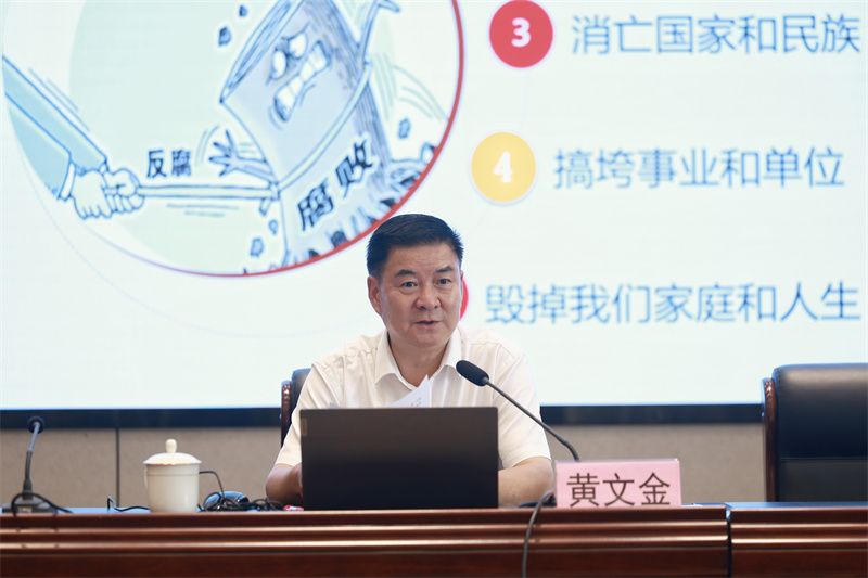 讲座中,黄文金结合自身工作经历和典型案例,围绕“腐败及其危害”“当前党和政府反腐败工作及其成效”以及“青年学生如何参与和支持反腐败工作”三个方面,与师生进行了深入交流。他强调,腐败是社会公敌,反腐败是全社会共同的责任,青年学生应树立“天下兴亡,匹夫有责”的使命感,积极投身廉洁社会建设实践。面对在场朝气蓬勃的青年学子,他提出了六点要求:一是树牢廉洁意识,奠定廉洁思想基础;二是加强纪法学习,提高遵纪守法能力;三是加强品性修养,构建积极正确“三观”;四是时刻严于律己,增强拒腐防变功力;五是保持阳光心态,远离消极负面宣传;六是坚持从我做起,积极推动廉政建设。