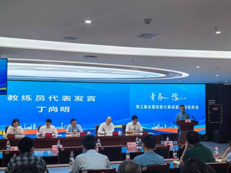 在分会场,集训中心代表、教练员代表和参赛选手代表依次发言。我院教练丁尚明作为教练员代表发言。他结合自身经历,讲述了从一名普通技术选手成长为全国技术能手的艰难历程,并分享了在中华人民共和国第一届职业技能大赛砌筑项目中荣获铜牌的感悟。他指出,成绩的取得离不开无数个日夜的刻苦训练与持续突破,同时希望以此激励更多年轻选手坚定信念、勇攀高峰。此外,他还介绍了学院在技能培训、选手选拔和备赛训练等方面的具体工作,展现了学院在职业技能教育领域的坚实基础与显著成果。