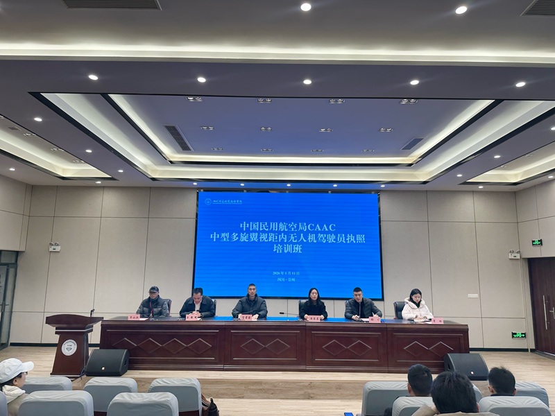 2026年1月11日上午9时,中国民用航空局CAAC中型多旋翼视距内无人机驾驶员执照培训班在我院第二学术报告厅开班。本次培训为针对地质系统内部的补贴性培训,由学院培训与竞赛处副处长杨川主持开班仪式。学院党委副书记肖前蔚、校企合作第三方教学督导黄清岩、培训与竞赛处处长王路明以及全体学员共同出席。