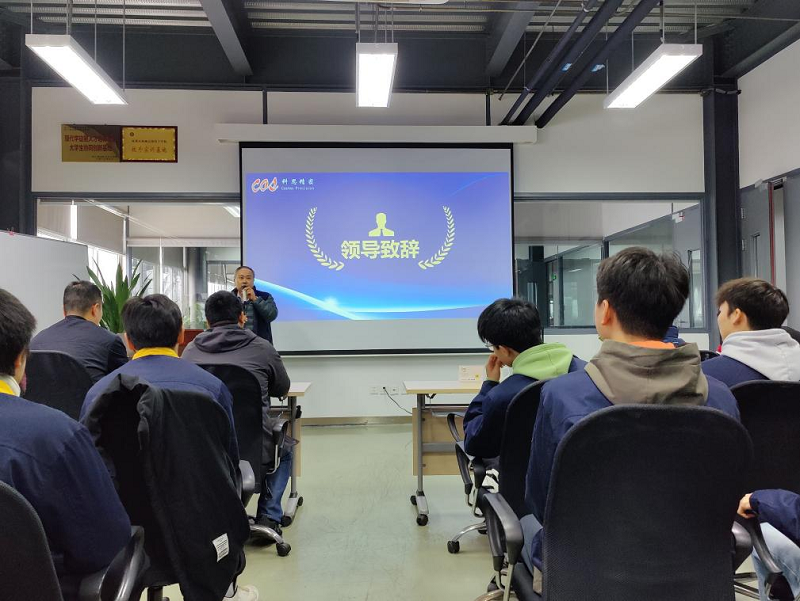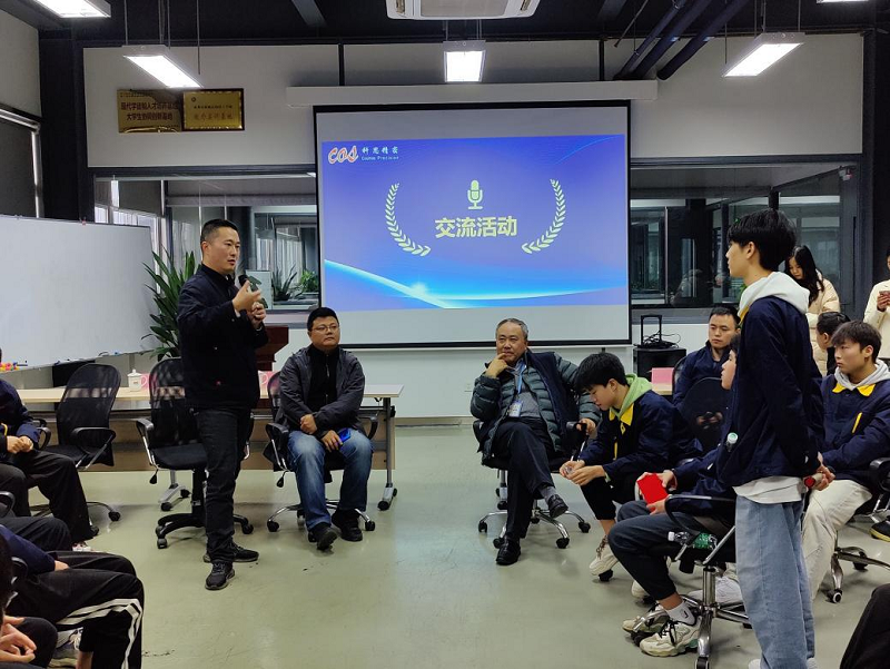 参观结束后,在公司活动室内举行了奖学金颁发仪式和交流活动。科思公司董事长邓兴强热烈欢迎了学院师生的到来,并详细阐述了订单班建立的教育初衷和人才培养模式。他表示,科思会全力为同学们提供一个良好的学习和职业发展平台,借此让同学们更加深入了解科思,爱上科思。
