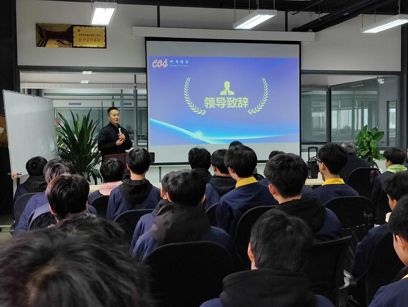 周旭感谢了科思公司与学院的合作办学,强调订单班合作模式对学院教学的积极影响,并就同学们今后的学习和职业发展规划提出了切实专业的指导。他还鼓励大家珍惜当下,把握好科思带来的每一次学习机会,不辜负企业对同学们的栽培。