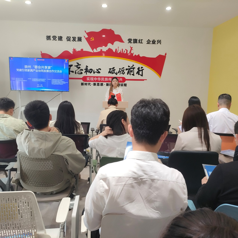 随后,党员们前往成都扬生家具有限公司,参观蓉会共享家党建阵地,实地感受党建引领企业发展的生动实践。在党课学习环节,来自家具企业、通信公司、软件技术企业及跨境电商协会的嘉宾,分别围绕党建引领经济发展、智能体应用、AI数字员工建设、家具品牌出海等内容作专题分享,为家具行业数字化转型提供新思路、新路径。