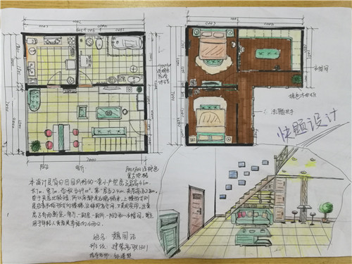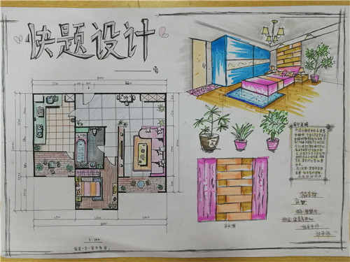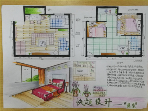 本次室内装饰快题设计比赛分为初赛和决赛两个部分,预赛从11月15日开始,到12月1日止,采取作品提交的形式,参赛选手来自建装高职1301,建装高职1302,建装高职1401,建装高职1402四个班,共180人。经过层层筛选,最终选出40名最优秀的同学参加决赛。