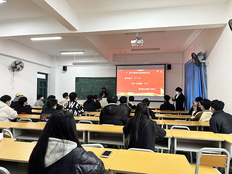 京东驻校主管教师高丹就本次实训的基本情况、实训成效做了回顾与总结:70余名同学在短短两个月时间内,共服务客户47144人次,点赞量达1万余次,整体数据达成部门前三,取得了优异的成绩。