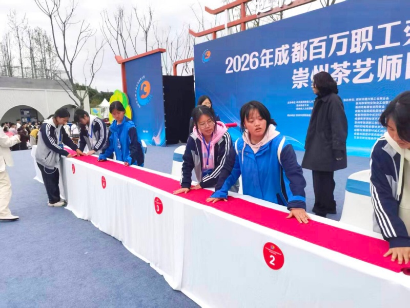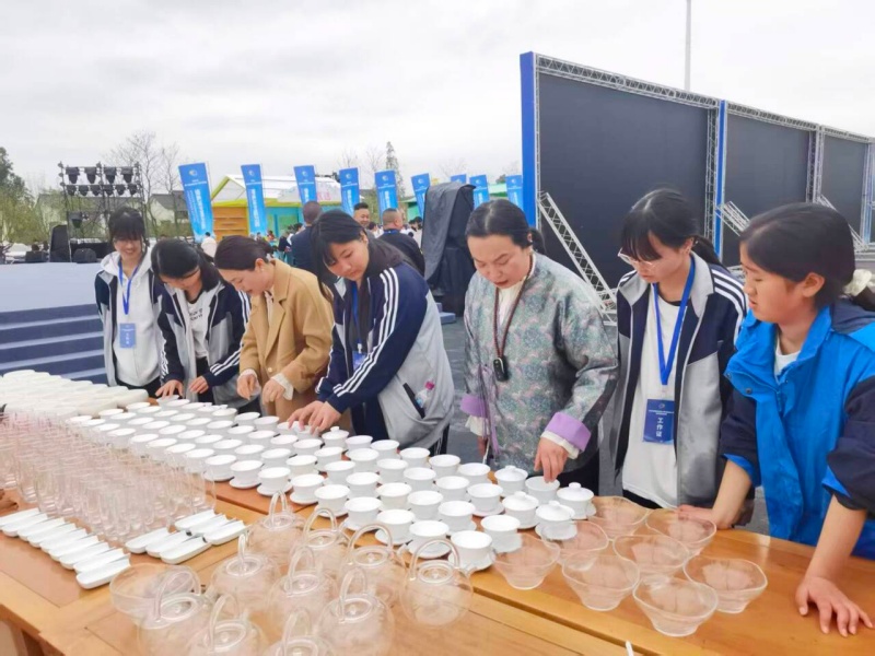 打破课堂与行业的壁垒,让茶艺教学更贴近行业实际、贴合学生成长需求,3月30日,学院旅游管理专业依托现代服务产业学院平台,在产业导师的指导下深度参与成都市百万职工技能大赛崇州市茶艺师大赛的筹备、赛务及参赛全流程,同时将《茶艺》课程“搬”至大赛现场。