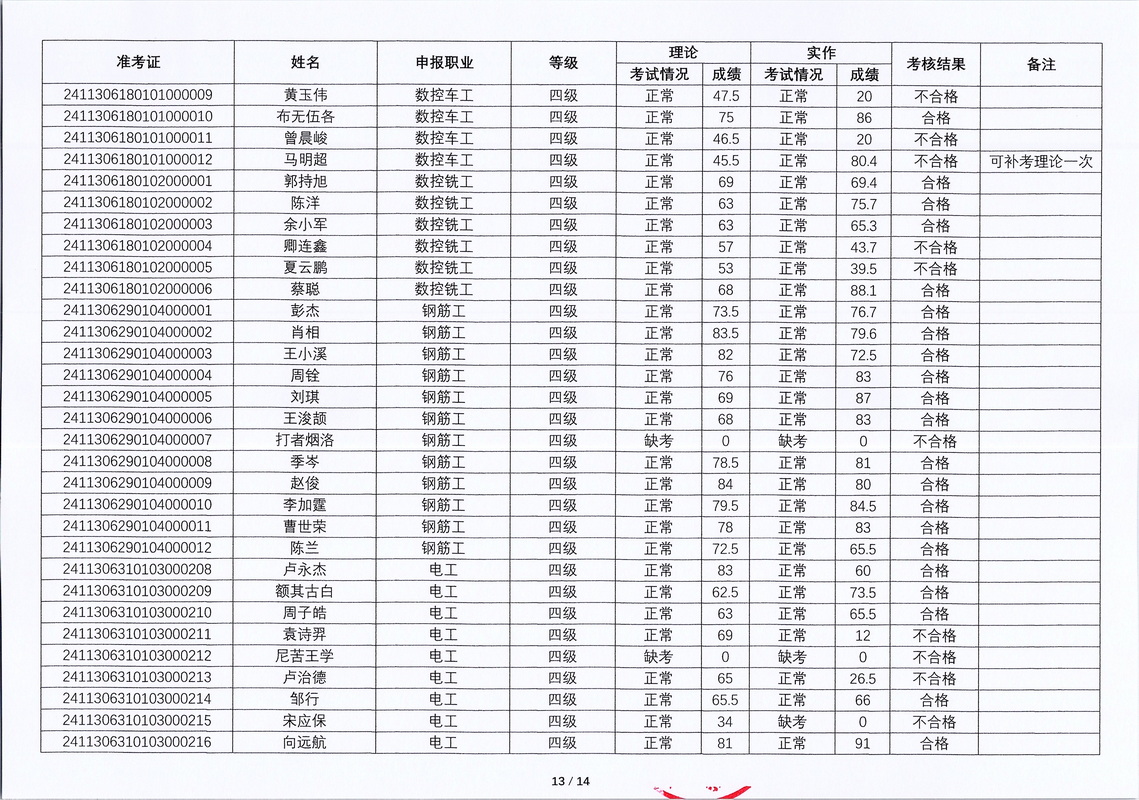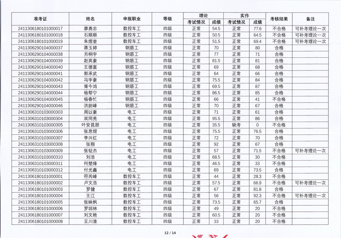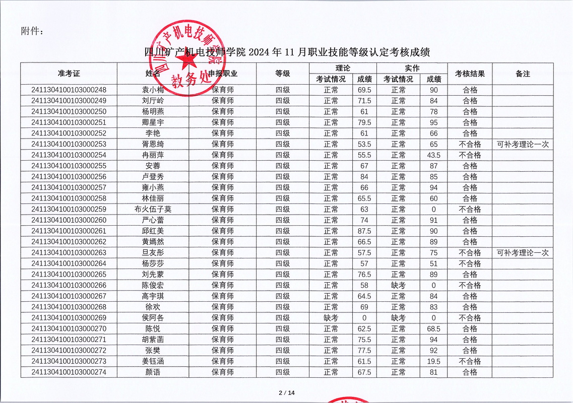 四川矿产机电技师学院关于2024年第四期(社会人员)职业技能等级认定考核成绩的公示