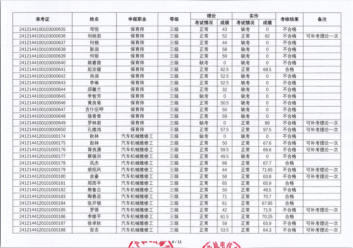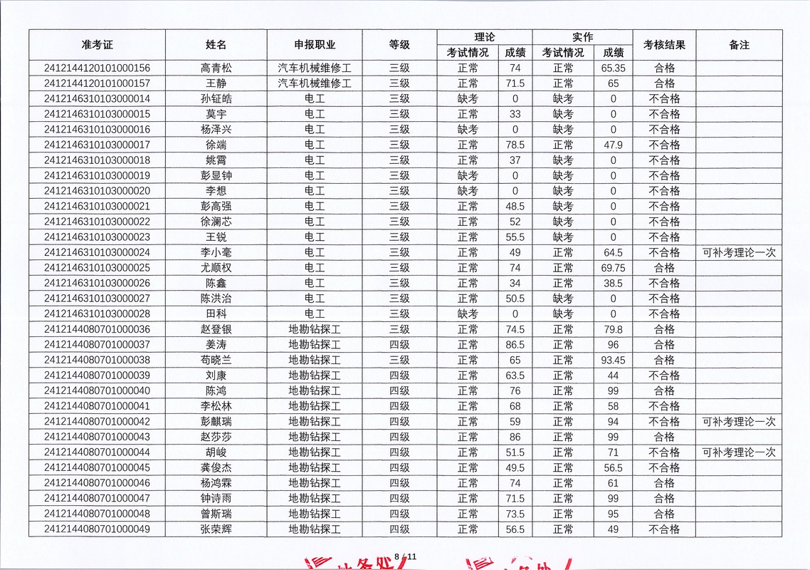 四川矿产机电技师学院关于2024年第四期(社会人员)职业技能等级认定考核成绩的公示