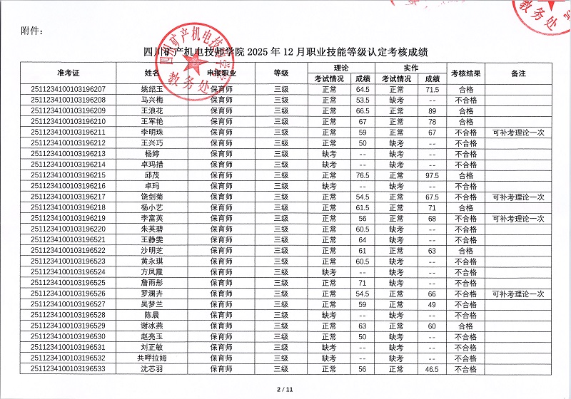 四川矿产机电技师学院关于2025年第二期职业技能等级认定考核成绩的公示