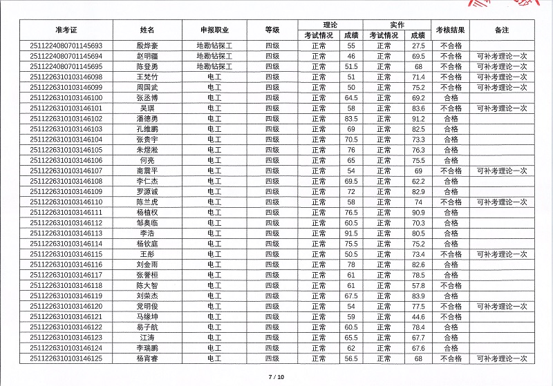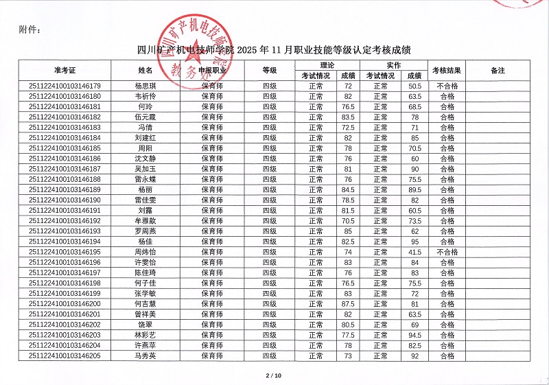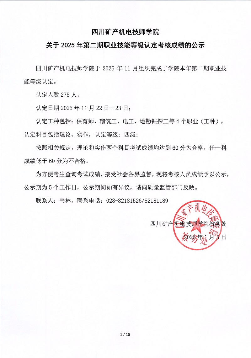四川矿产机电技师学院关于2025年第二期职业技能等级认定考核成绩的公示