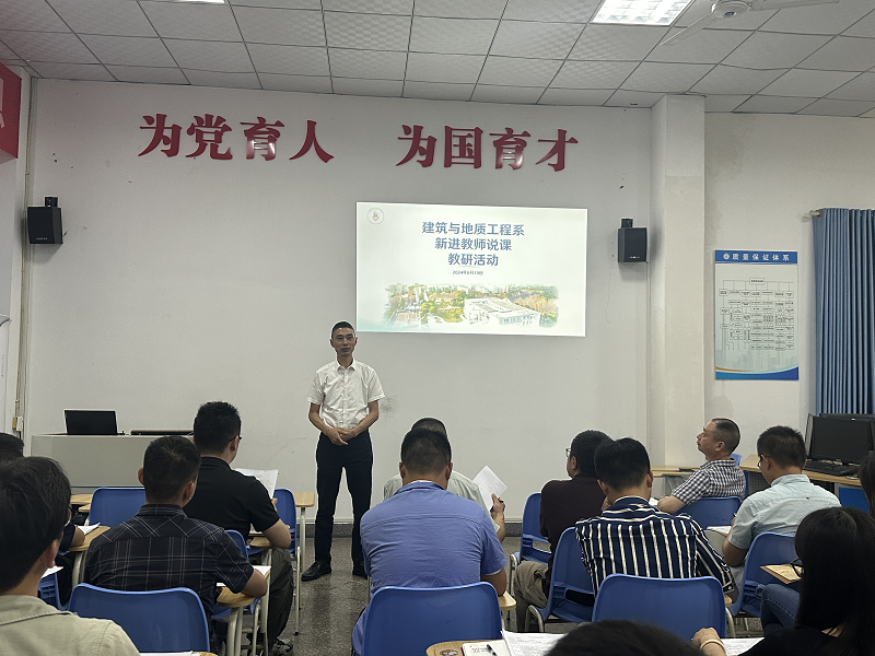 为促进新进教师尽快适应教学工作、进入教师角色,6月19日,建筑与地质工程系开展了说课评课教研活动,今年新入职的4位年轻教师参与说课。活动由系主任殷文昌主持,系分管院领导肖前蔚参加了本次教研活动。