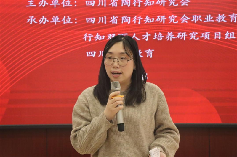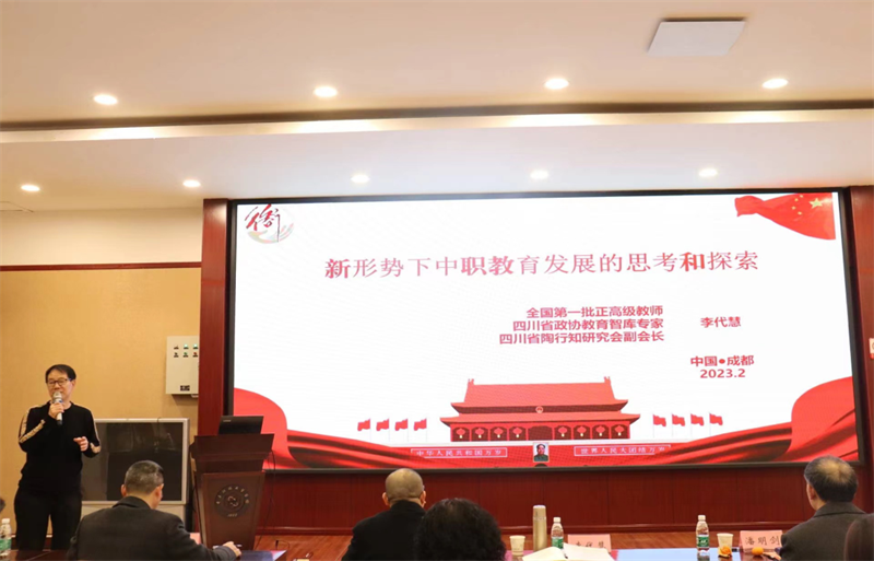 四川省政协教育智库专家、四川省陶行知研究会副会长李代慧作《新形势下中职教育发展的思考和探索》主题项目报告。