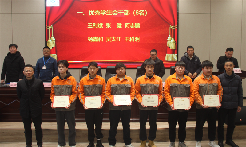 获奖学生有序上台,接受与会领导颁发的荣誉证书并合影留念,优秀学生代表王利斌上台发表获奖感言。