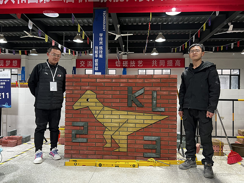 砌筑项目(世赛选拔)竞赛时长6.5个小时,分两天进行,选手需按照放样切割,完成墙面和小型台阶的镶贴。经过激烈角逐,选手需完成识图放样、切割、测量、抹灰、砌筑、找平、勾缝等实操环节,丁尚明同学手中不断翻转、舞动着各式各样的测量仪器,凭借精心设计与操作,以砖为具,巧手筑画,高标准完成参赛作品,以总分91.2的绝对优势将砌筑项目(世赛选拔)第一名收入囊中。