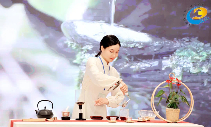 我院教师与学生创新茶艺环节,将自身经历同当前时政热点相结合,有将茶艺与消防员结合,一杯香茗敬英雄;有将茶艺与传承结合,学茶艺、练茶艺、教茶艺;有将茶艺与友情、亲情结合,在茶中传递感情。