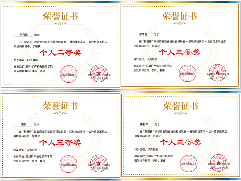 12月14日下午,学院经济管理系2021、2022级会计专业共计8名选手参加2023年第十届全国职业院校百城联赛技能赛新财税应用科目。经过激烈角逐,会计22231班刘兴燕斩获全国二等奖,会计22211班廖萍蕊、汪琳、田利萍获全国三等奖。