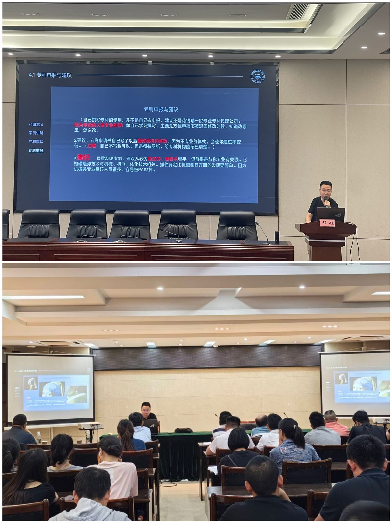 培训第一讲是由机电工程系教师邓超带来主题为“科研兴趣挖掘及专利申请指导”的讲座,他从科研意义、案例讲解、专利撰写和专利申请四个方面为参培教师解答了在科研方面的一些疑惑,并通过自身的科研经历和收获,鼓励青年教师将所思所想转化为实际行动,将研究方向与专业紧密结合,才能探索出适合自身发展的科研项目。