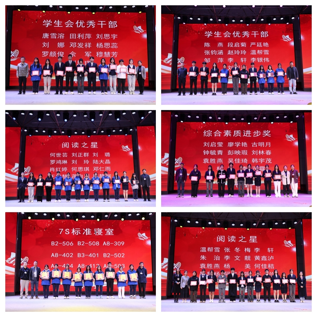 副主任赵娜宣读《四川矿产机电技师学院经济管理系关于表彰2023-2024学年综合素养进步学生、先进个人及团体的决定》。学院领导和系部老师为获得“综合素养进步奖”、“优秀学生会干部”、“阅读之星”、“体育活动比赛”、“7S标准寝室”的个人和集体进行颁奖。